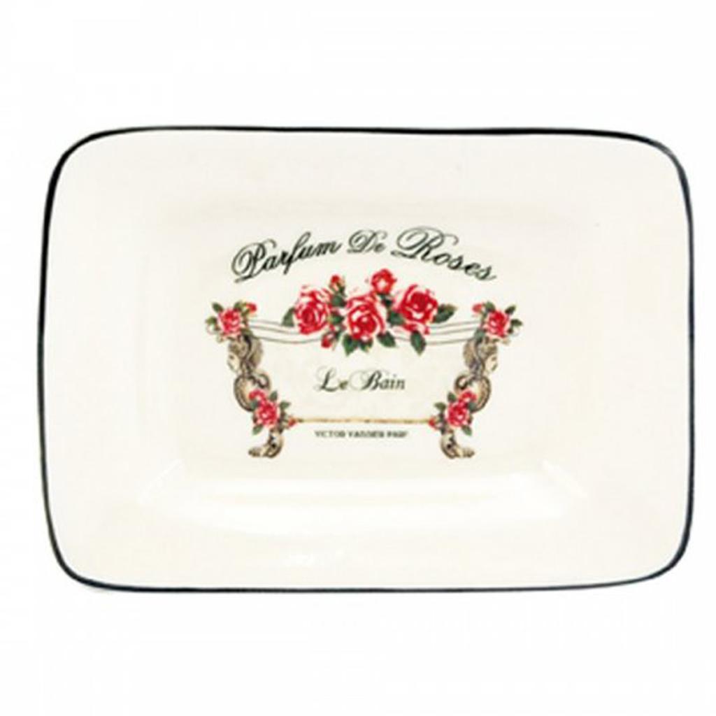 Les Trésors De Lily [R1750] – Elfenbeinfarbene Keramik-Seifenschale „Parfum de Roses“. (Retro) - 15x11cm