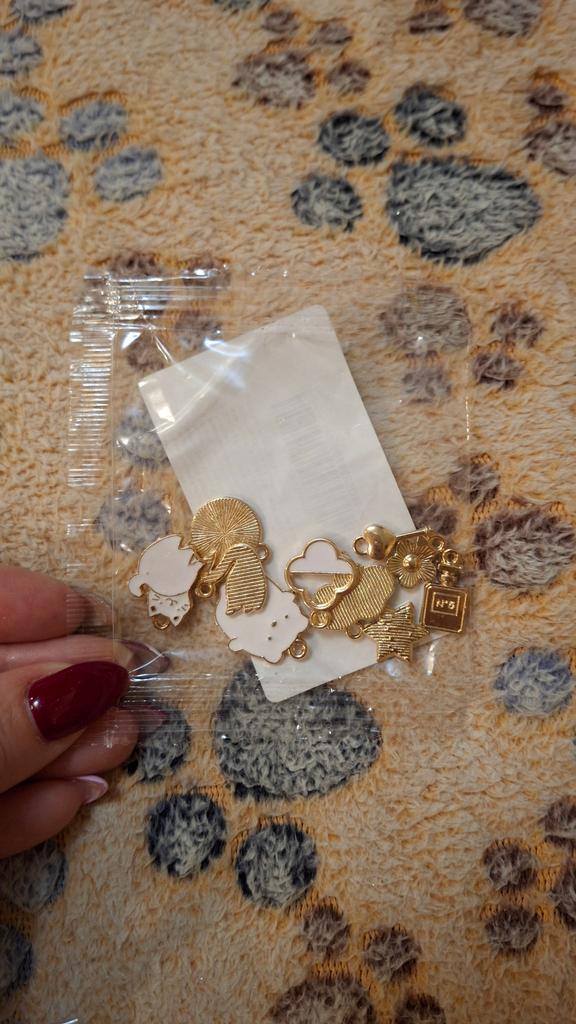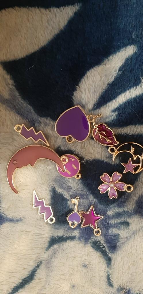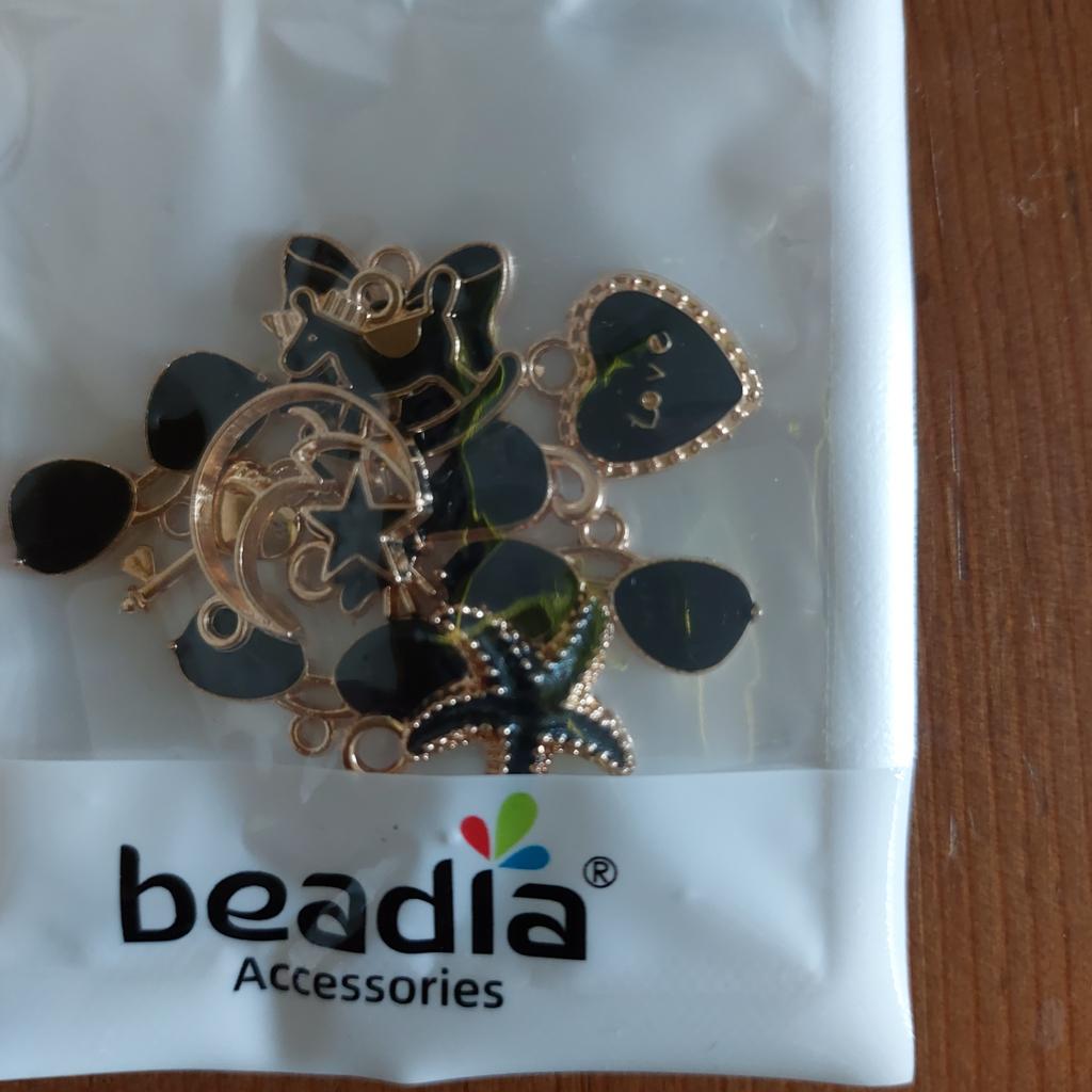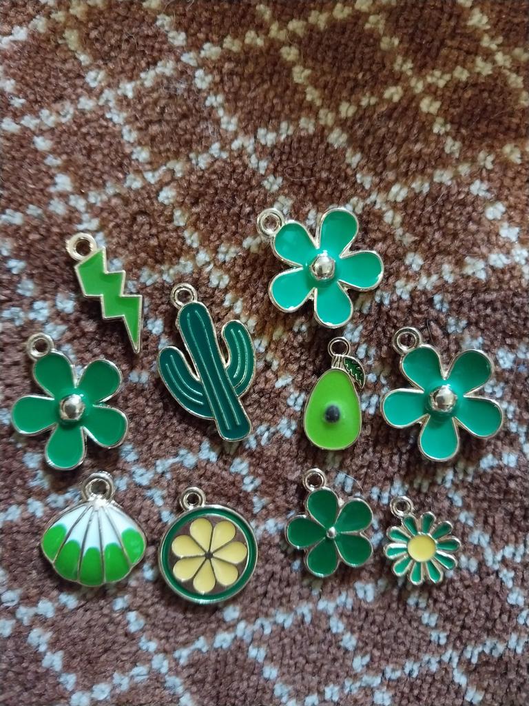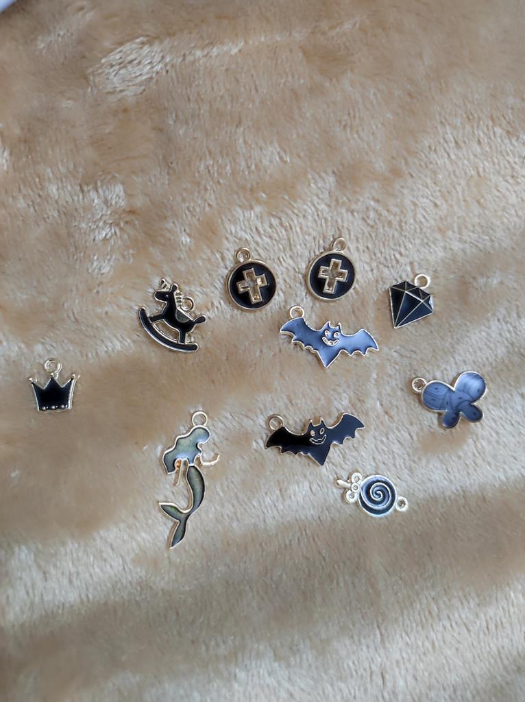 10 Anhänger, zufällig. Der Größte : Katze 1,7x1,6 cm Kuh 1,9x1,7cm Der Kleinste: Schmetterling 1,7x1,0cm Herz 1,8x1,0cm Milota