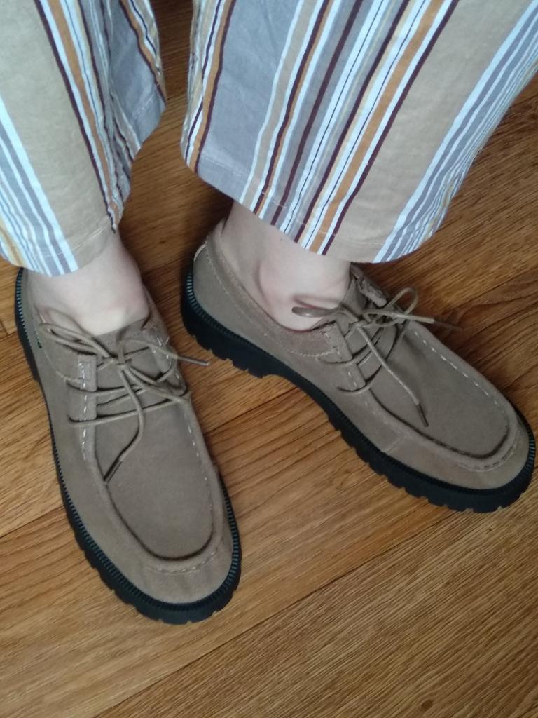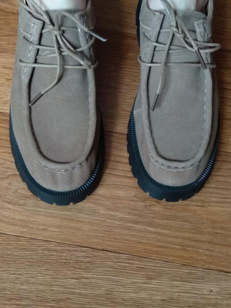 Um ehrlich zu sein, hätten sie gut abschneiden können, wenn sie aus Wildleder wären. Vielleicht ein unglückliches Paar. Der rechte ist etwas größer als der linke. Sie haben einen schmalen Fuß und sind nicht so bequem wie erwartet. Und hier, nun ja, irgendwie im Allgemeinen... Warum ist das so nachlässig???? Die Vorderseite ist schlecht verarbeitet, mit einem Stift beschrieben, einige sind zerkratzt, dreckig 😔 sehr traurig.