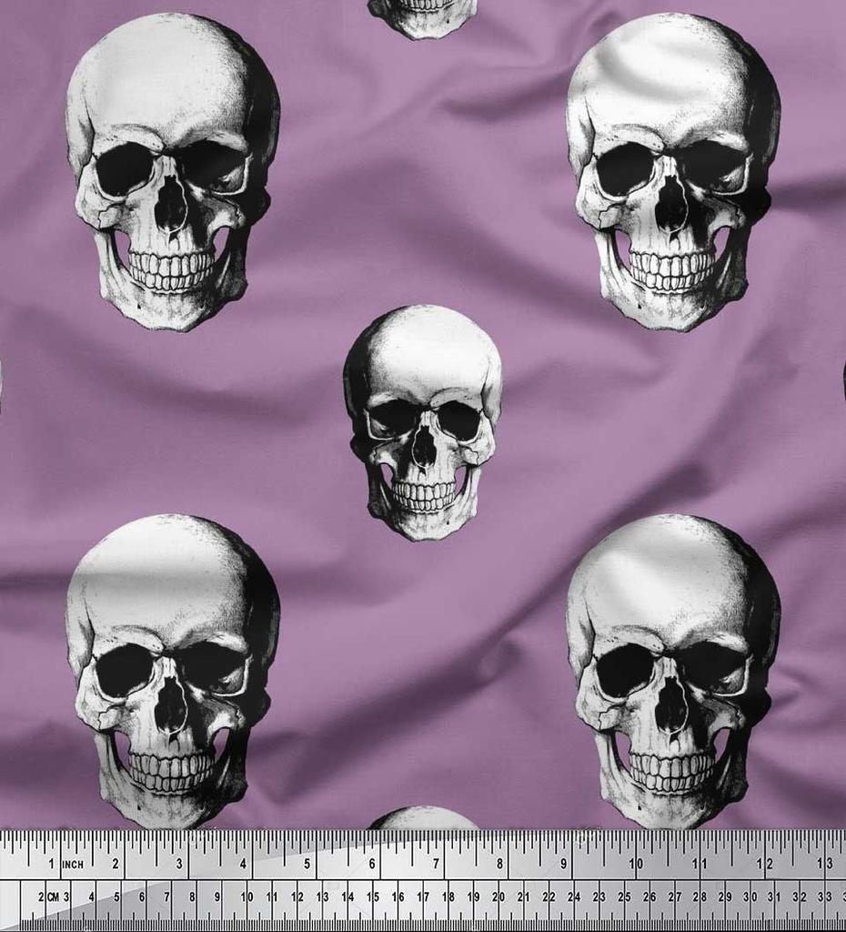Soimoi Japanischer Krepp-Satinstoff, Horror-Totenkopf, Halloween-Druck, Meterware, 107 cm