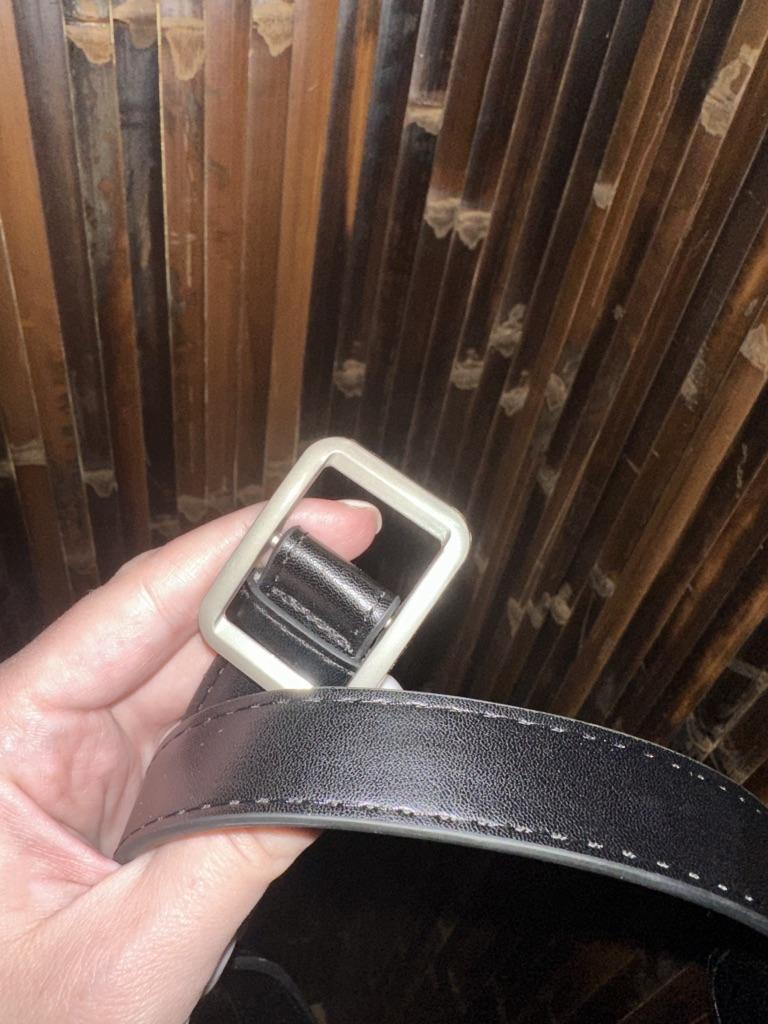 Der Gürtel ist cool. Alles stimmt sowohl in der Farbe als auch im Aussehen überein
