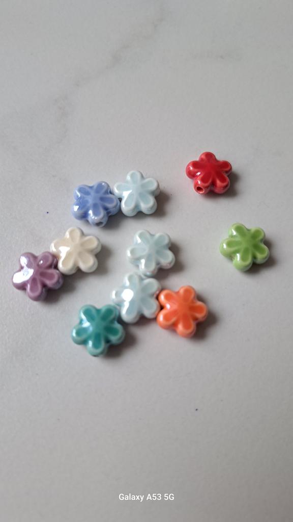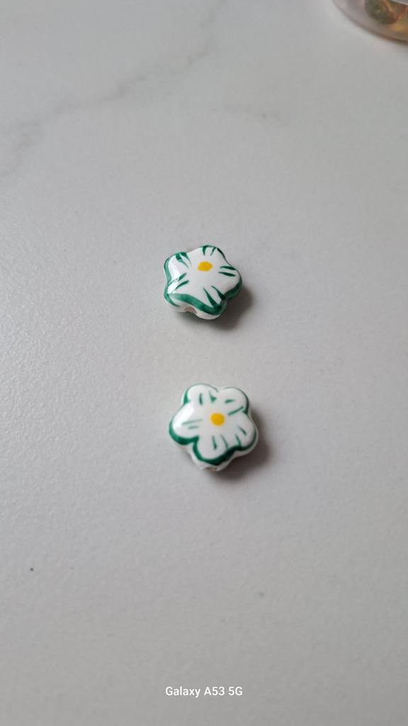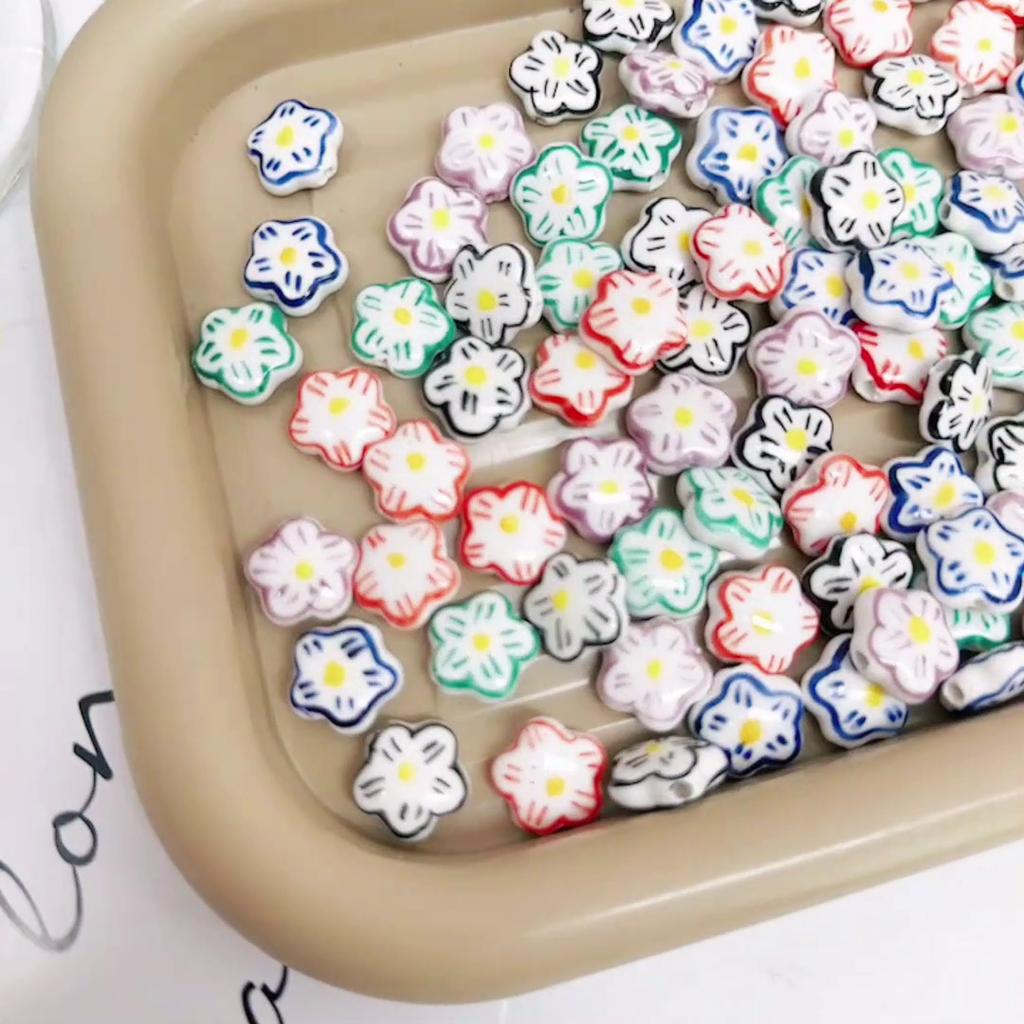 2 Stück/Beutel, handbemalt, 15 mm, Keramik-Porzellan-Blumenperlen, Charm, lose Distanzperlen für Halskette, Ohrringe, DIY-Schmuck, Basteln
