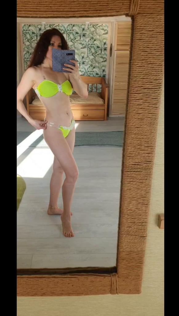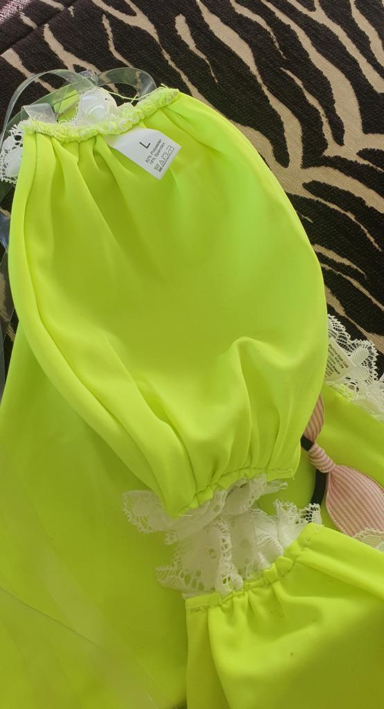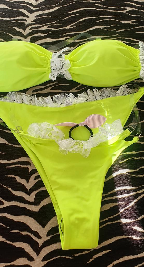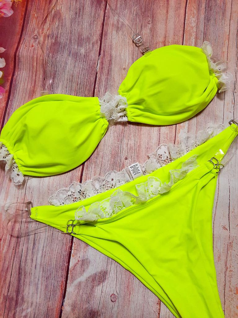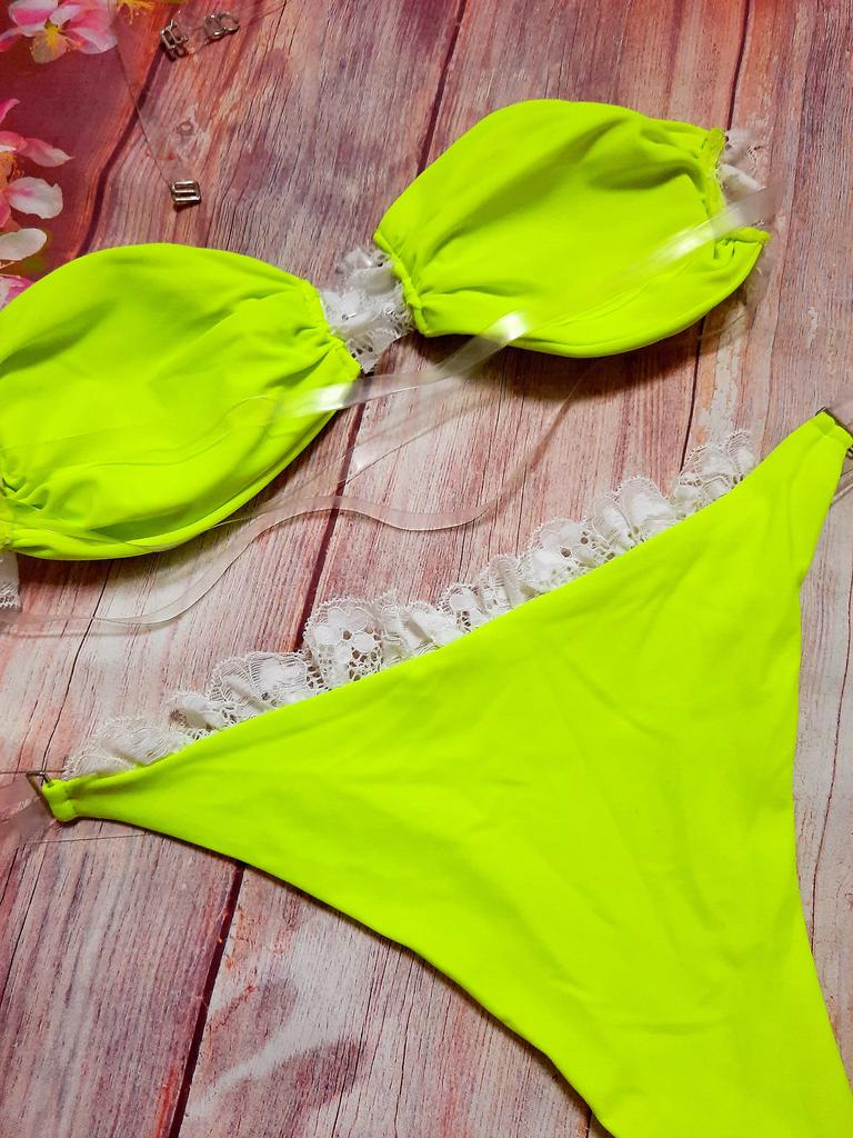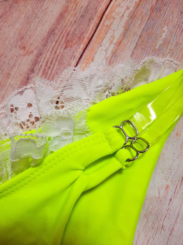 Frauen Dreieck Oversize Split Bikini Anzug Set Krawatte Seite G-String Tanga Badeanzug Spitze Klebeband Gelb Einfarbig