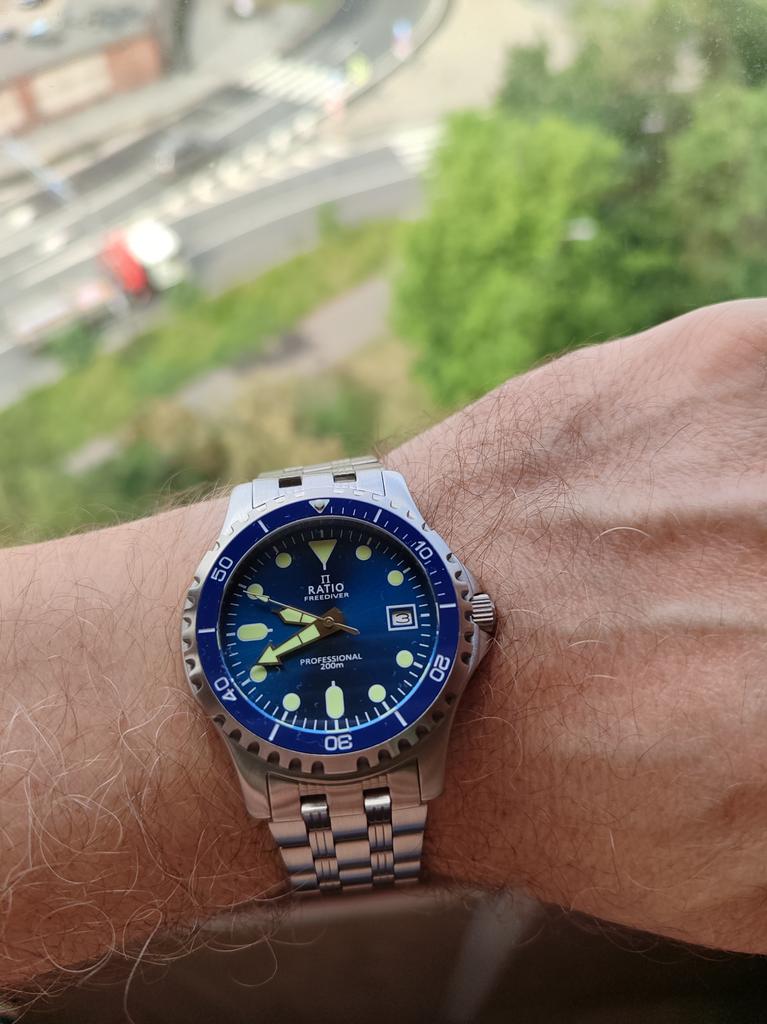 RATIO FreeDiver Professional Herrenuhr mit saphirblauem Sunray-Zifferblatt, Quarz, RTF007, 200 m