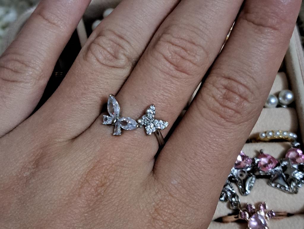Glänzende Schmetterlingsringe für Frauen und Mädchen, minimalistischer verstellbarer Ring