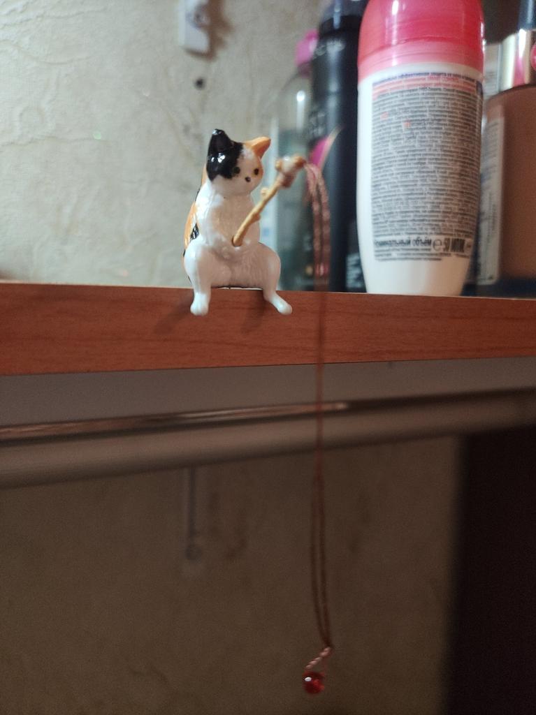 Die Katze ist sehr süß. Die Angelrute war getrennt und fiel ab. Ich habe es mit Kleber verklebt, alles ist in Ordnung.