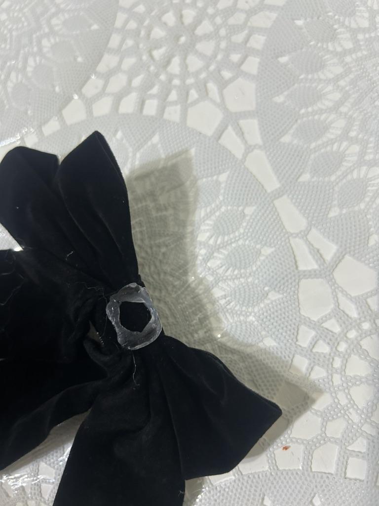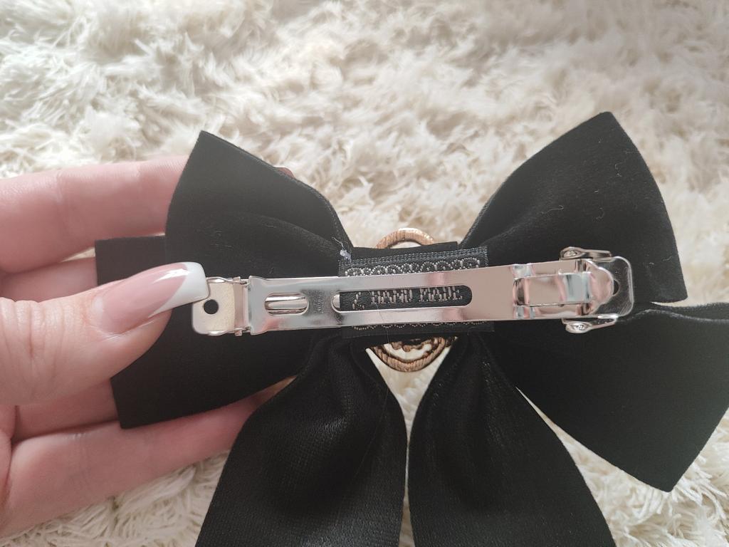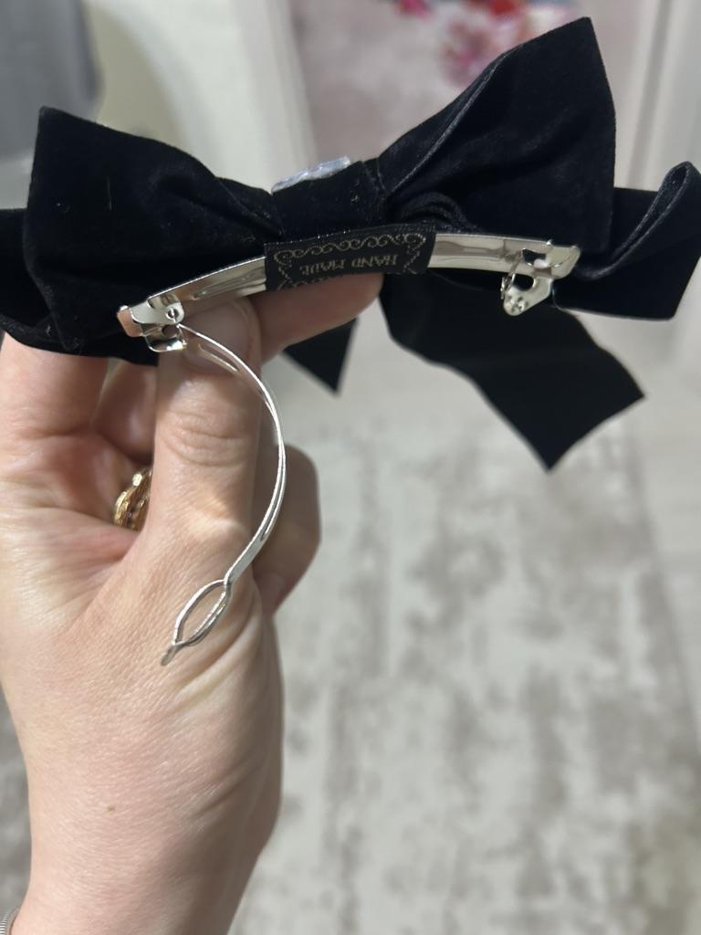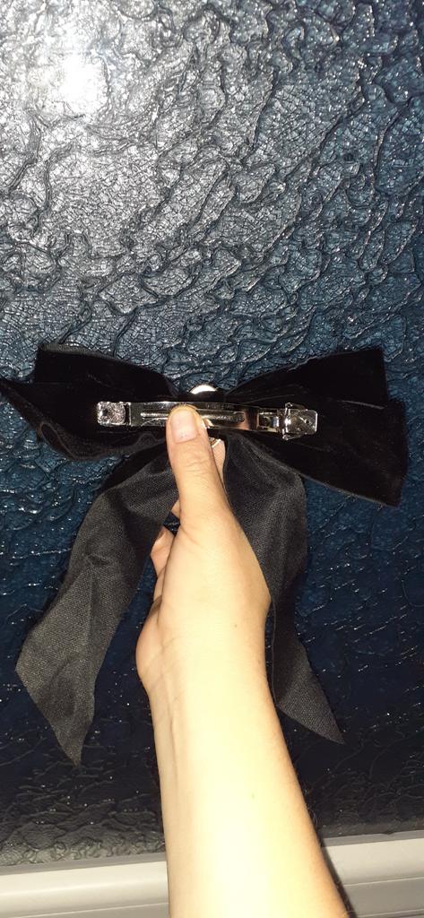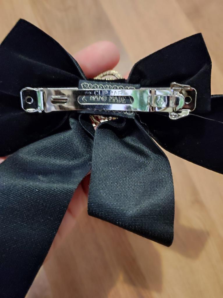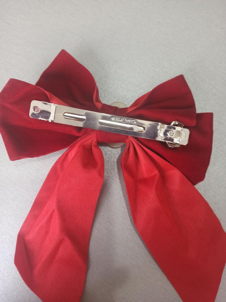 Die Schleife war etwas zerknittert, aber wunderschön, aus Velours. Der Verschluss ist schwach, er hält nicht viele Haare. Kann als kleine Haarspange verwendet werden.