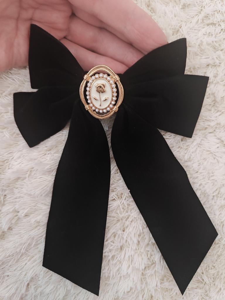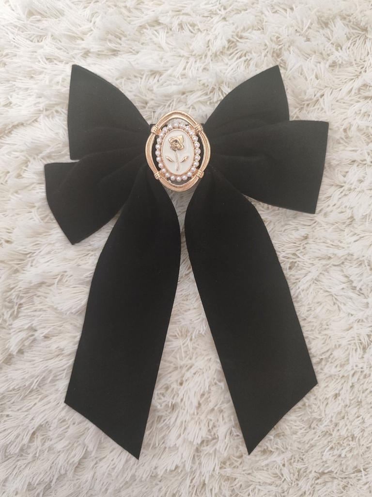 Haarnadeln aus schwarzem Samt mit Schleife, elegante Haarspangen aus Stofflegierung mit Rosen für Frauen