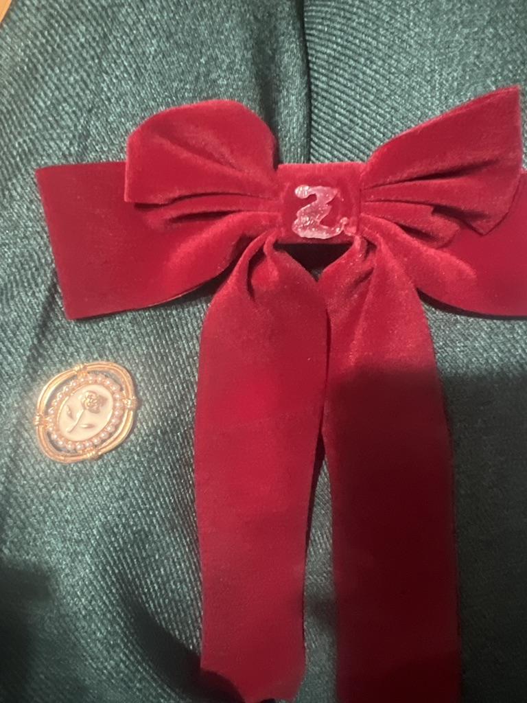 Ich liebe es, es ist groß, für Samtmatten mit der an der Schleife geklebten Plastikbrosche. Vielen Dank im Voraus.