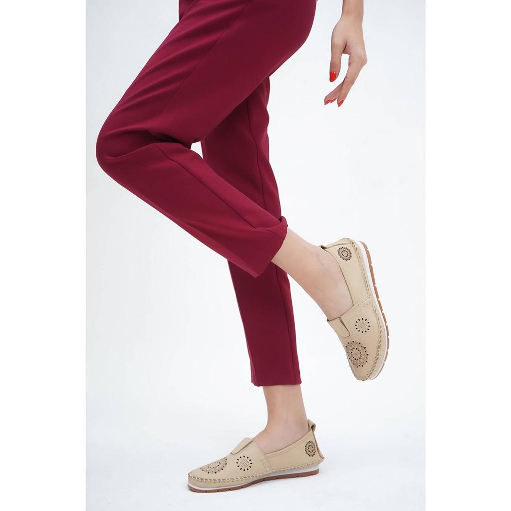Damenmode Echtleder New Beige Leder Flats Freizeitschuhe