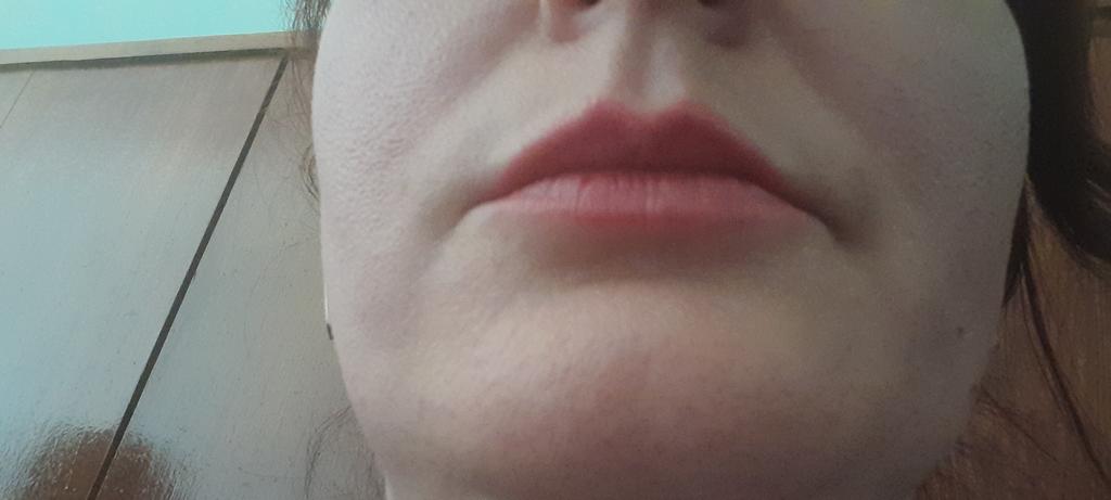 Foto, wie vorher und nachher.. Sehr leuchtend! Spendet den Lippen Feuchtigkeit. Läuft nicht aus. Zieht die Aufmerksamkeit auf sich