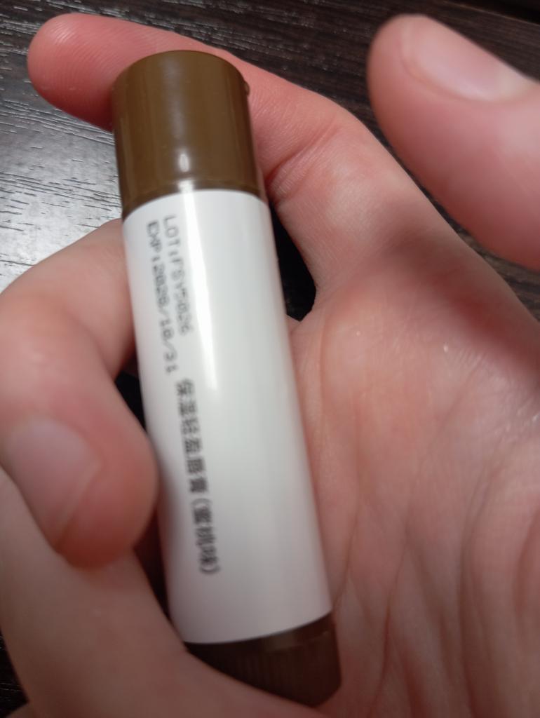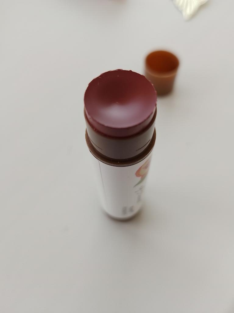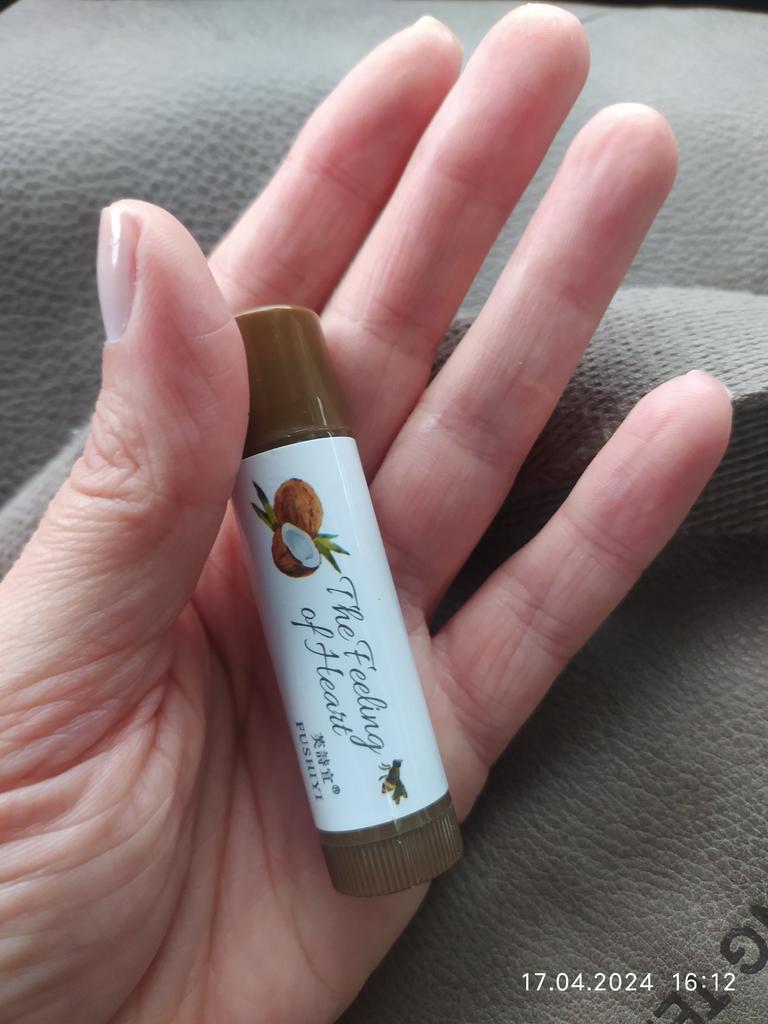 Auf der Kappe befindet sich eine Kokosnuss, aber es riecht nicht. Farbloses Aussehen. Ich weiß noch nicht, wie es auf den Lippen aussehen wird.
