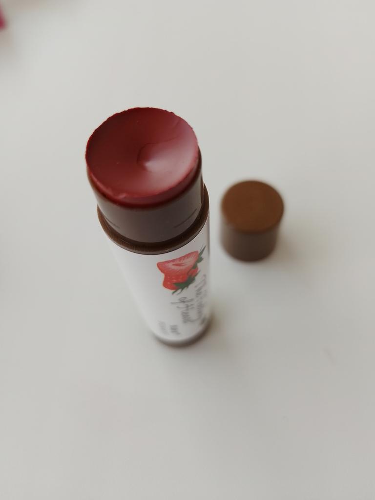 Die Form des Lippenstifts selbst hat ein wenig enttäuscht. Der Erdbeer-Lippenstift hat absolut keinen Geruch und keinen Geschmack😳 und hat eine sehr leichte, deckende Textur.