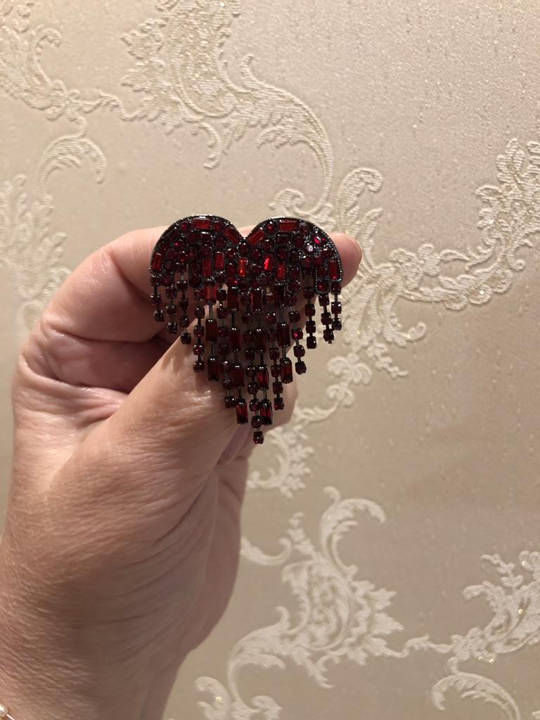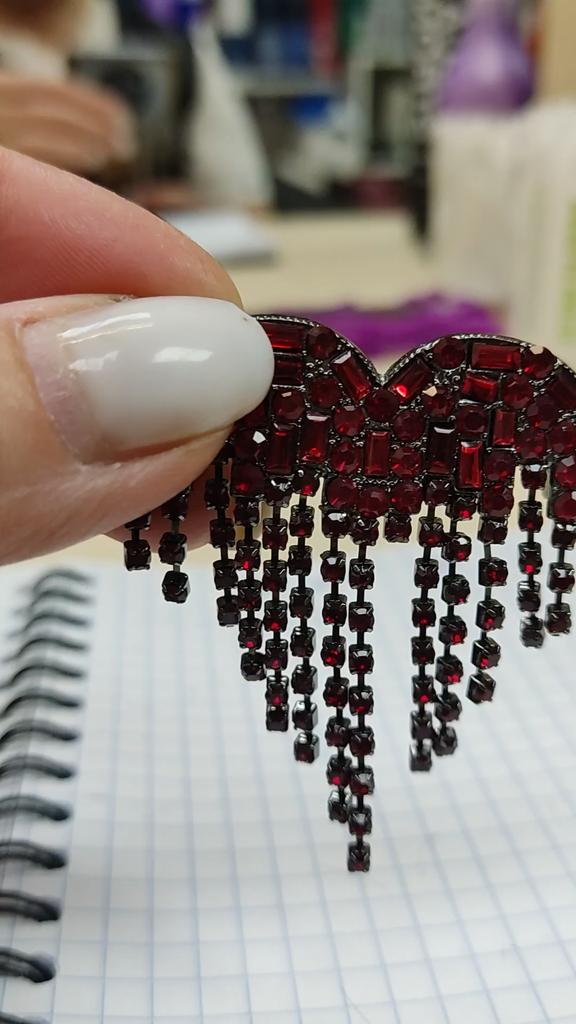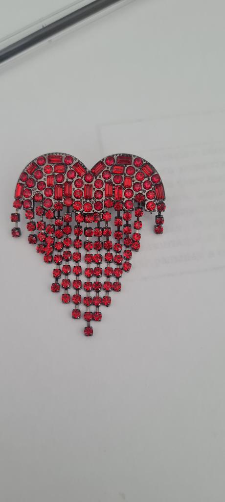 1 Stück Luxusschmuck Blut Schwarz Strass Herz Reversnadel Langer Faden Quaste Brosche Damen Brosche