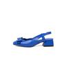 Stilvolle weiße Damenschuhe mit offenem Rücken und Schleife und kurzem Absatz