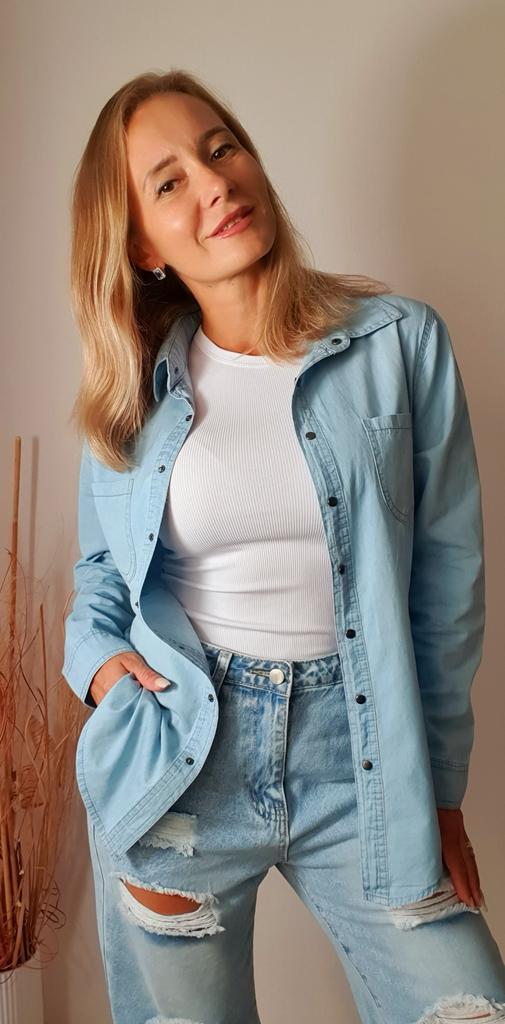 Jeanshemd Damen Design Sense Langarm-Frühlings- und Herbst-Freizeithemden mit schmalem Boden