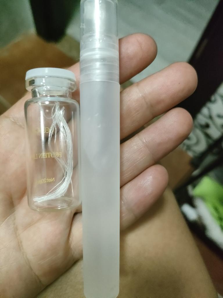 Die Fäden glätten sich nicht, sondern kräuseln sich wie Würmer. Sie lösen sich nicht auf. Die Essenz riecht köstlich, ich befeuchte nur mein Gesicht damit.