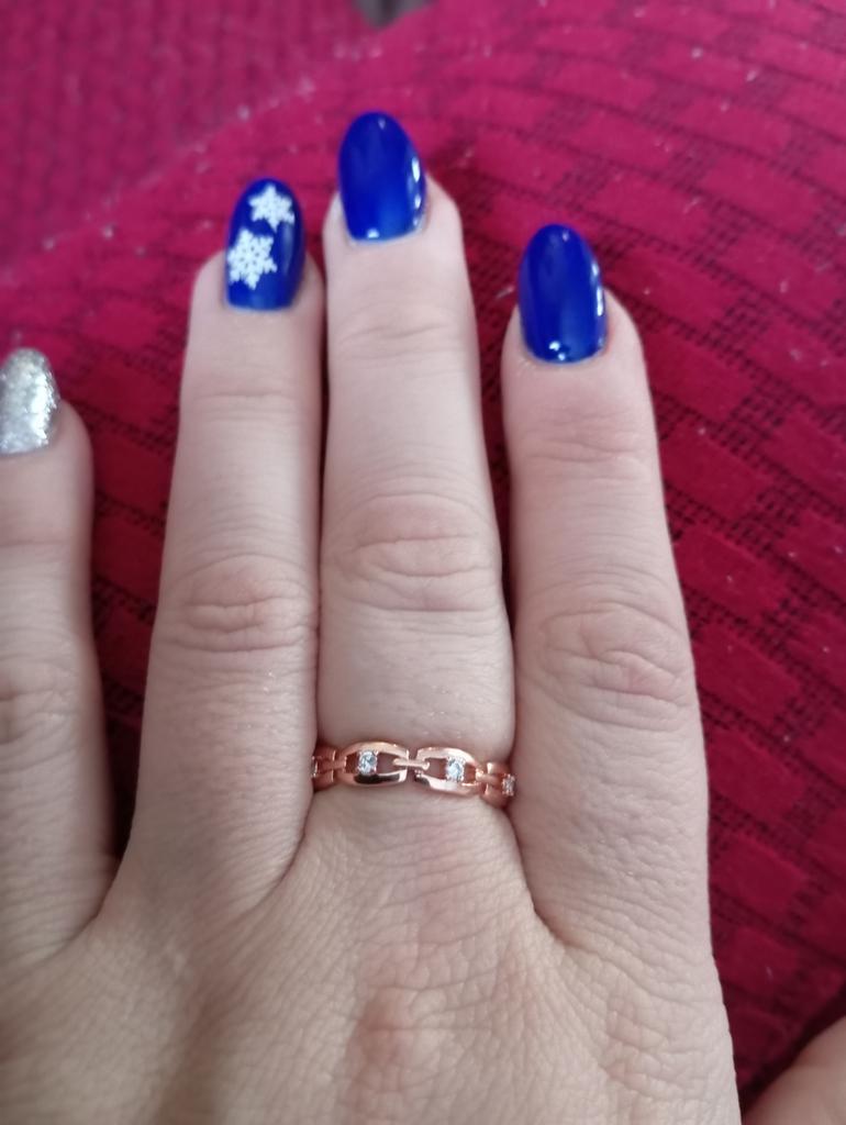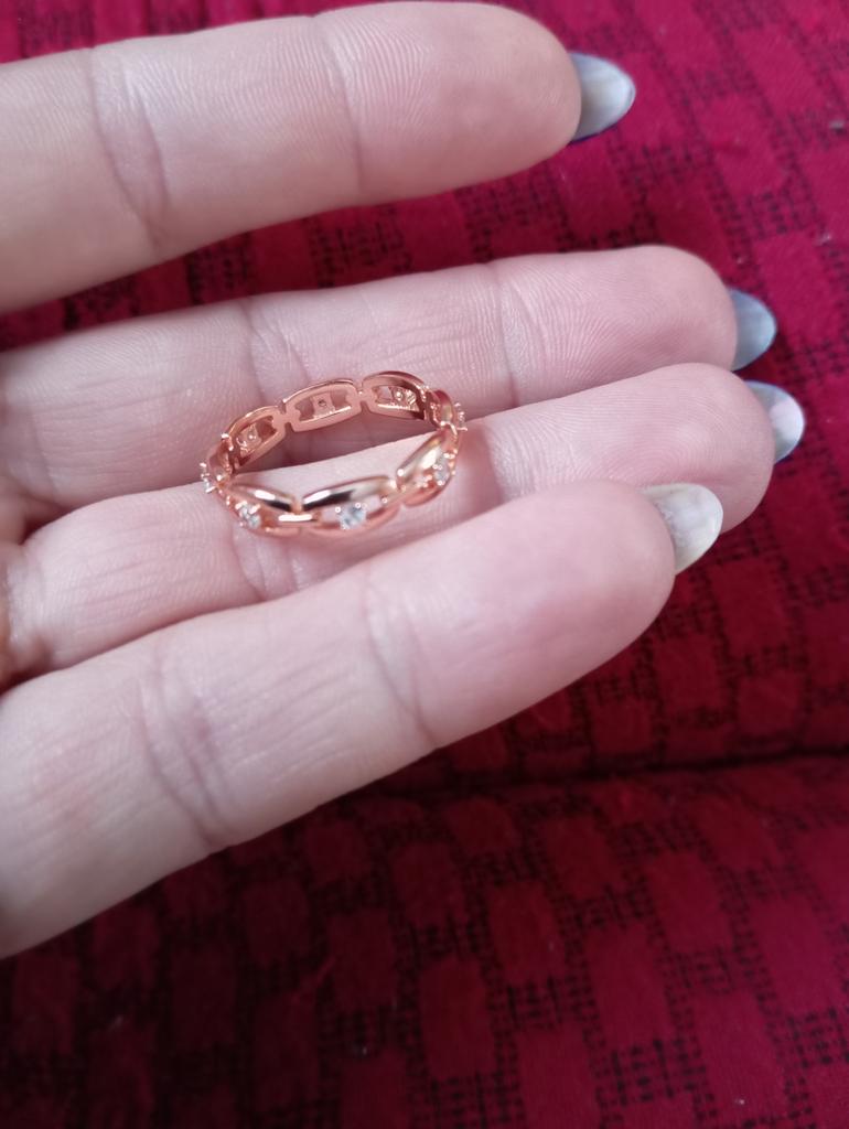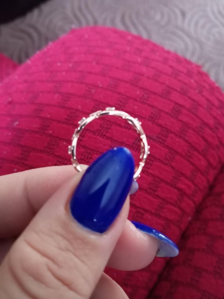 Ein sehr süßer und zarter Ring! Zuerst habe ich Ohrringe gekauft und dann habe ich den gleichen Ring gefunden. Es sieht aus wie medizinisches Gold, die Steine funkeln sehr schön!