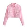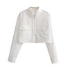 Damen Kurze Hemden Langarm Weiße Blusen Tasche Damen Oberteile Weibliche Kleidung