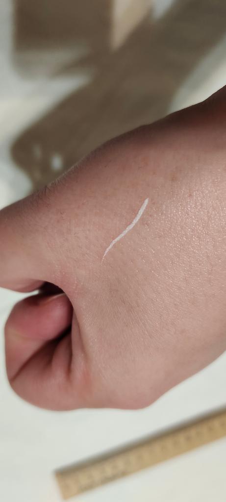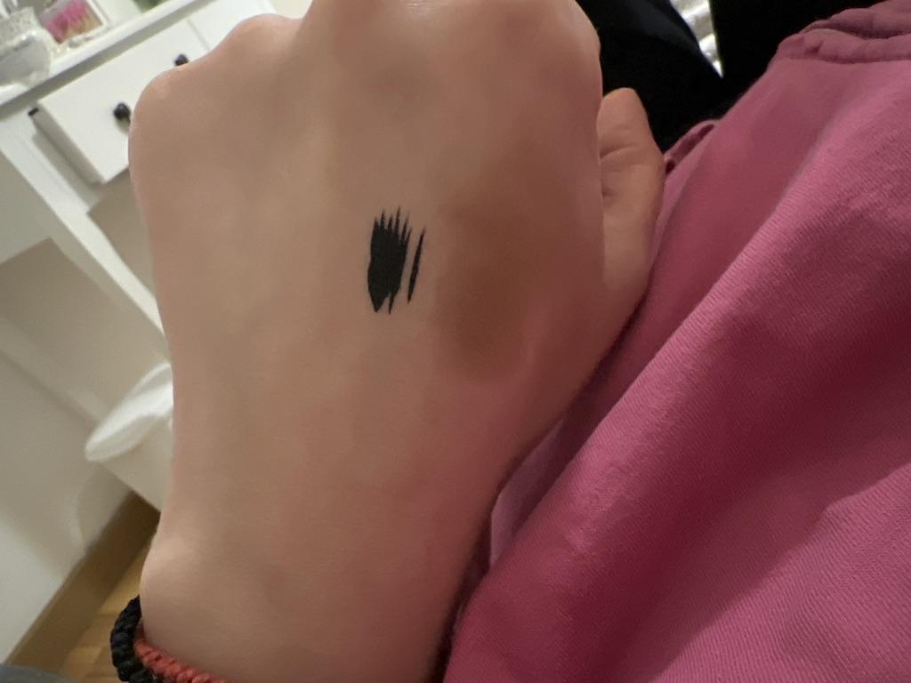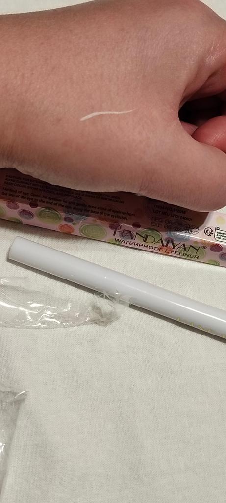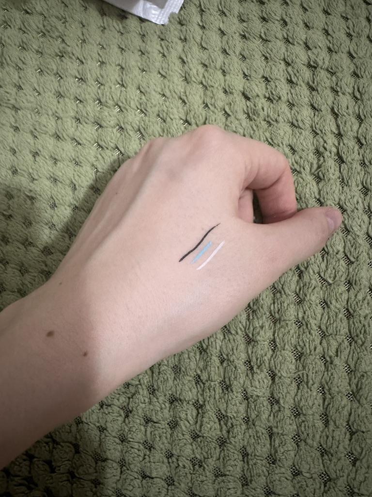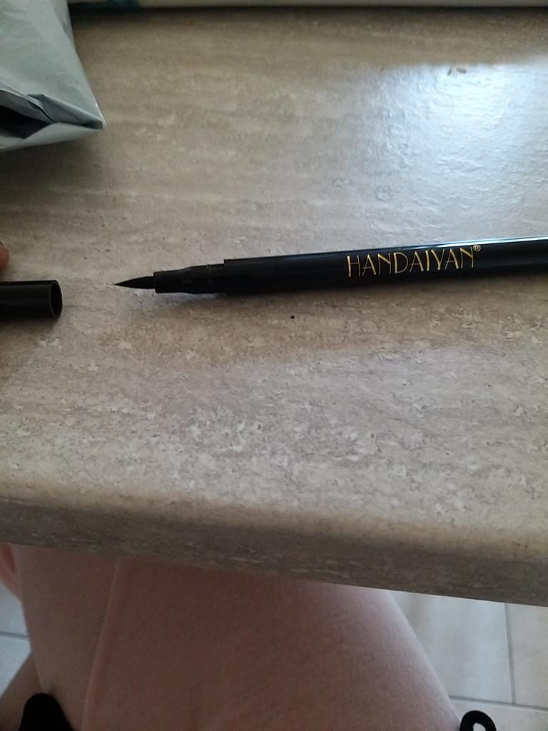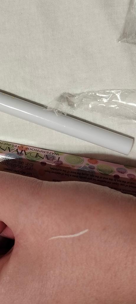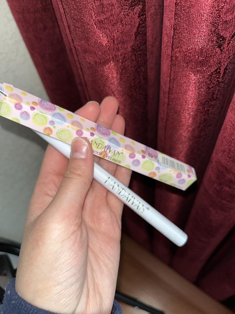 Der Eyeliner trocknet sofort. Wasserfest. Die Farbe ist auf der Haut nicht so hell