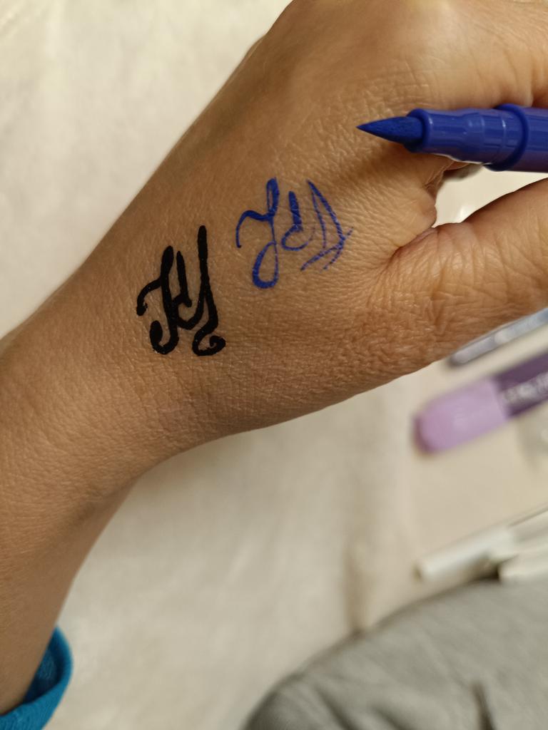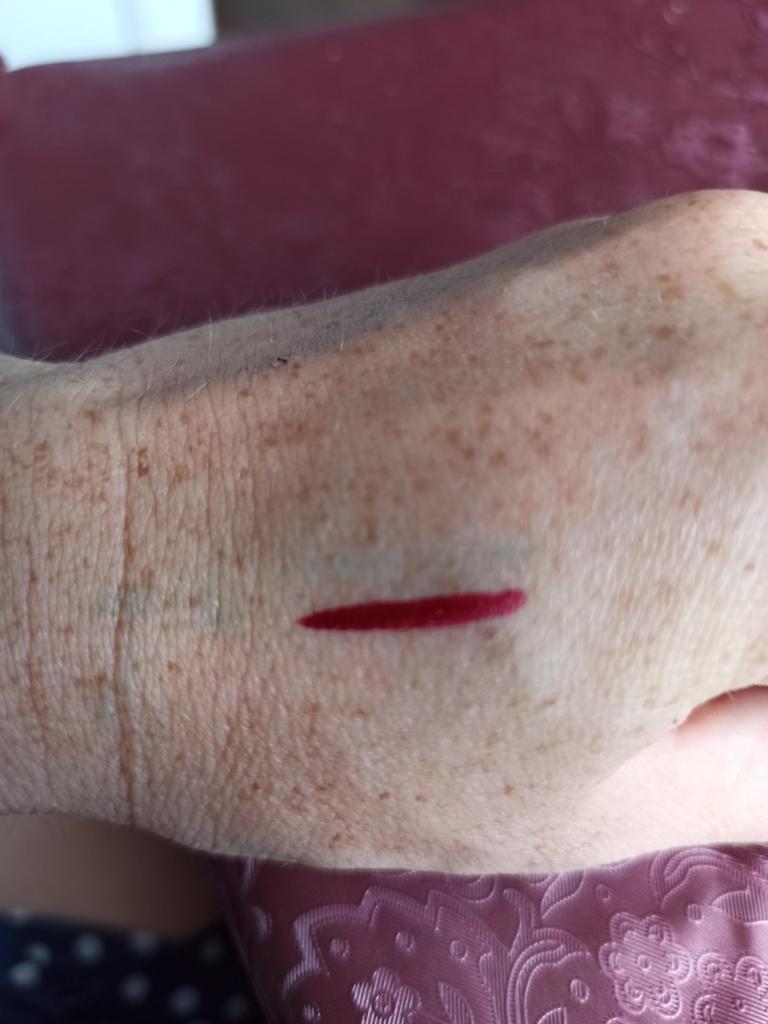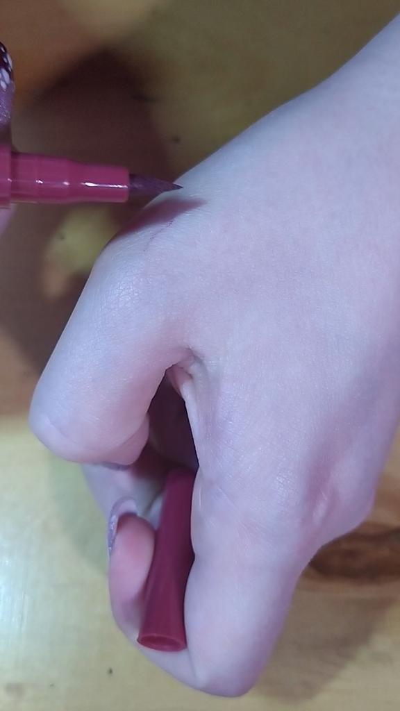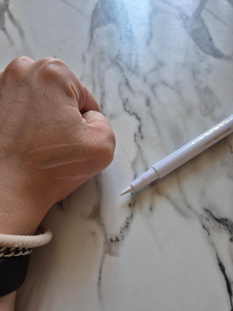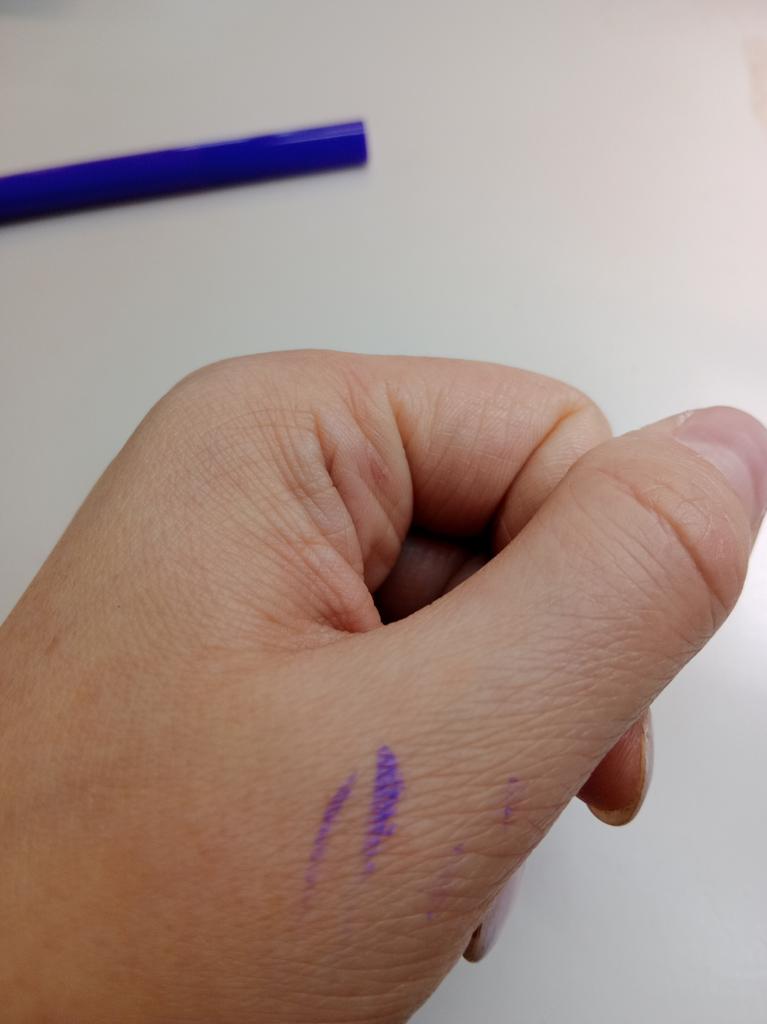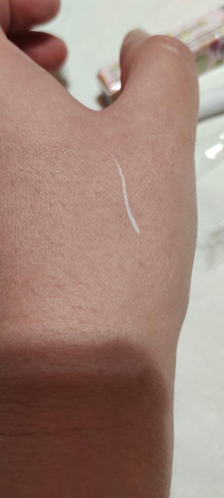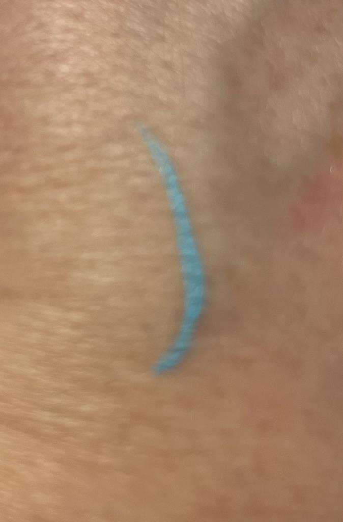 Der Eyeliner trocknet sofort. Wasserfest. Die Farbe ist auf der Haut nicht so hell