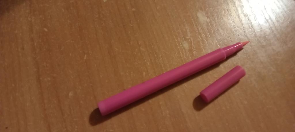 Wunderschöner Eyeliner, aber trocknet in einer Sekunde. Das Pigment reicht fast nicht bis zur Spitze, Linien verwischen beim Auftragen mit dem Pinsel.