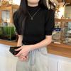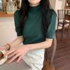Sommer Vintage Puff Hülse Gestrickte Bluse Frauen Koreanische Halb Stehkragen Casual Elegante Frau Shirt Mode Schlank Solide Tops 25244