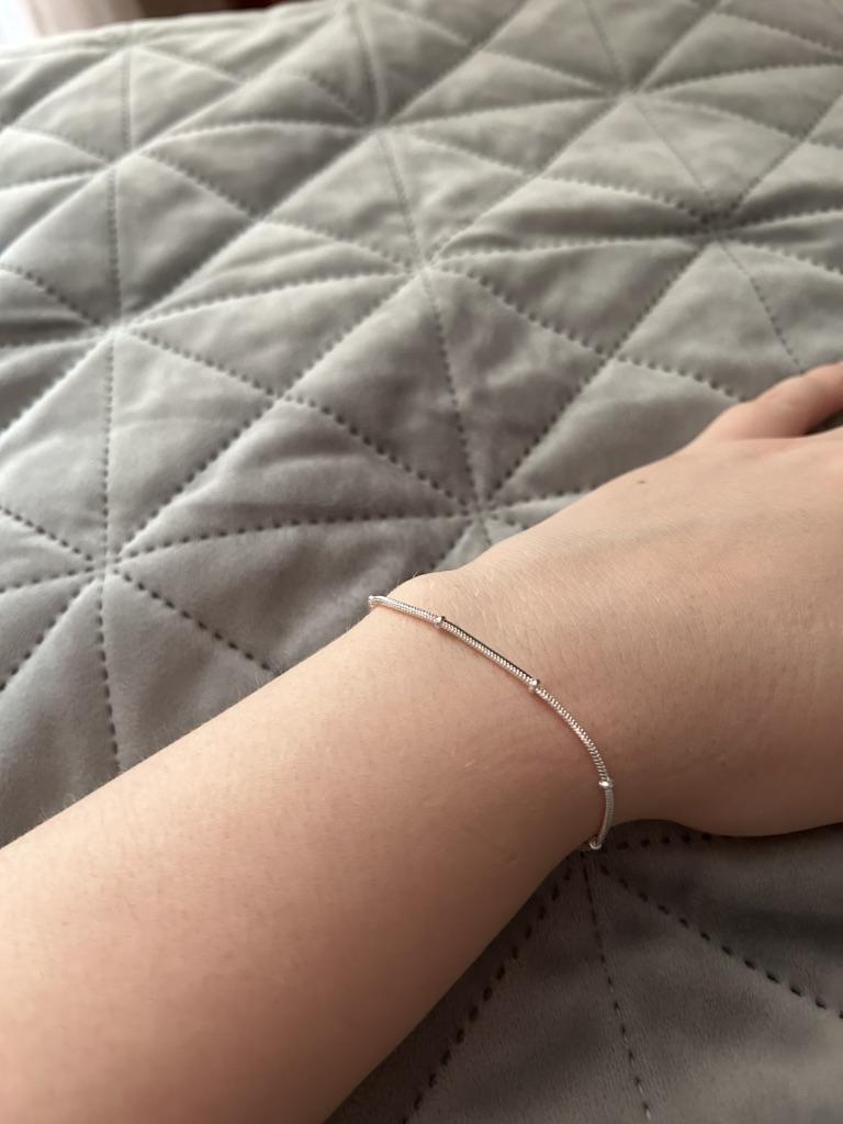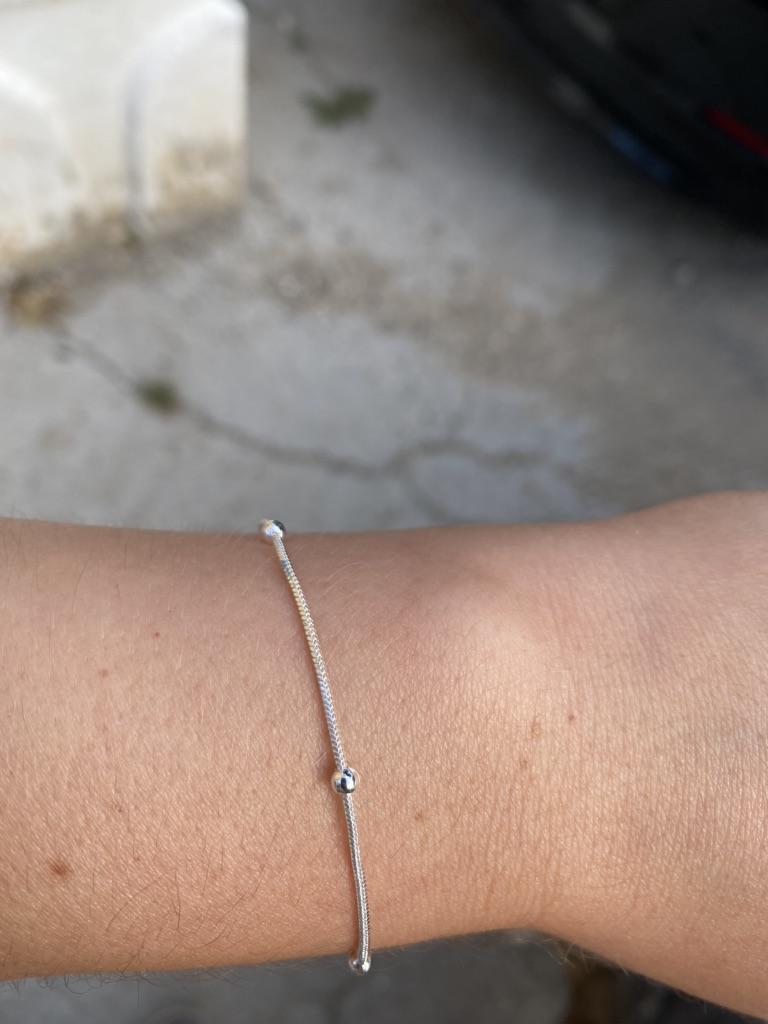 Sehr süßes Armband, dünn. Sieht aus wie Silber.