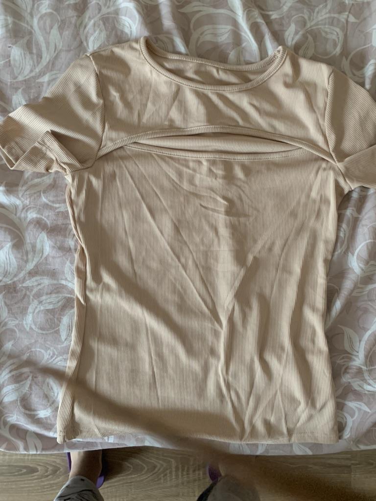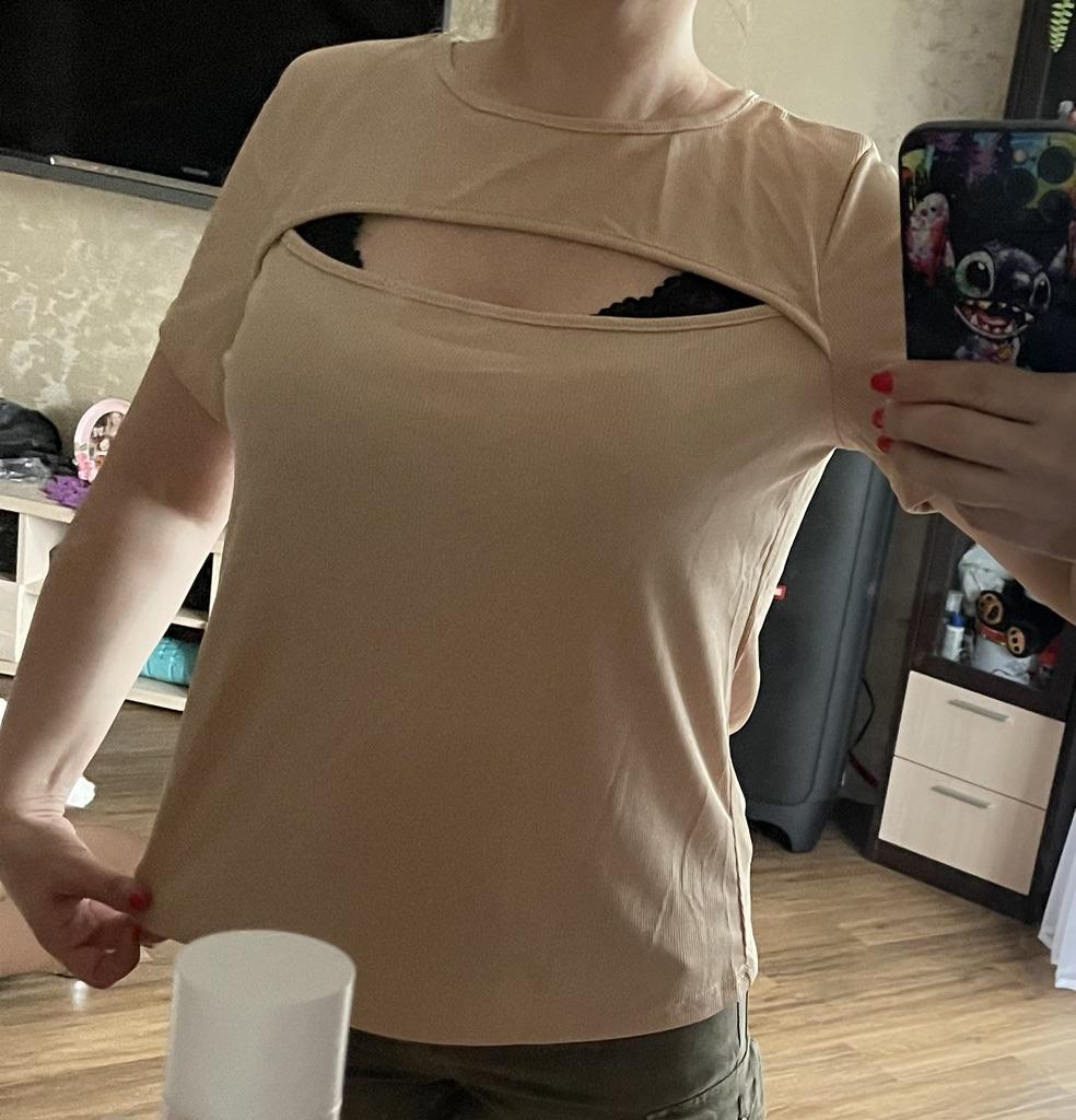 Ein wunderschönes T-Shirt ist angekommen. Stilvoll. Der Ausschnitt betont die Brust nicht so sehr und sieht cool aus. Der Stoff sieht aus wie Seide, es gibt kein Etikett. Eine Größe klein, aber ich trage M, habe aber L bestellt. Die Farbe ist wunderschön. Ich empfehle es 😍