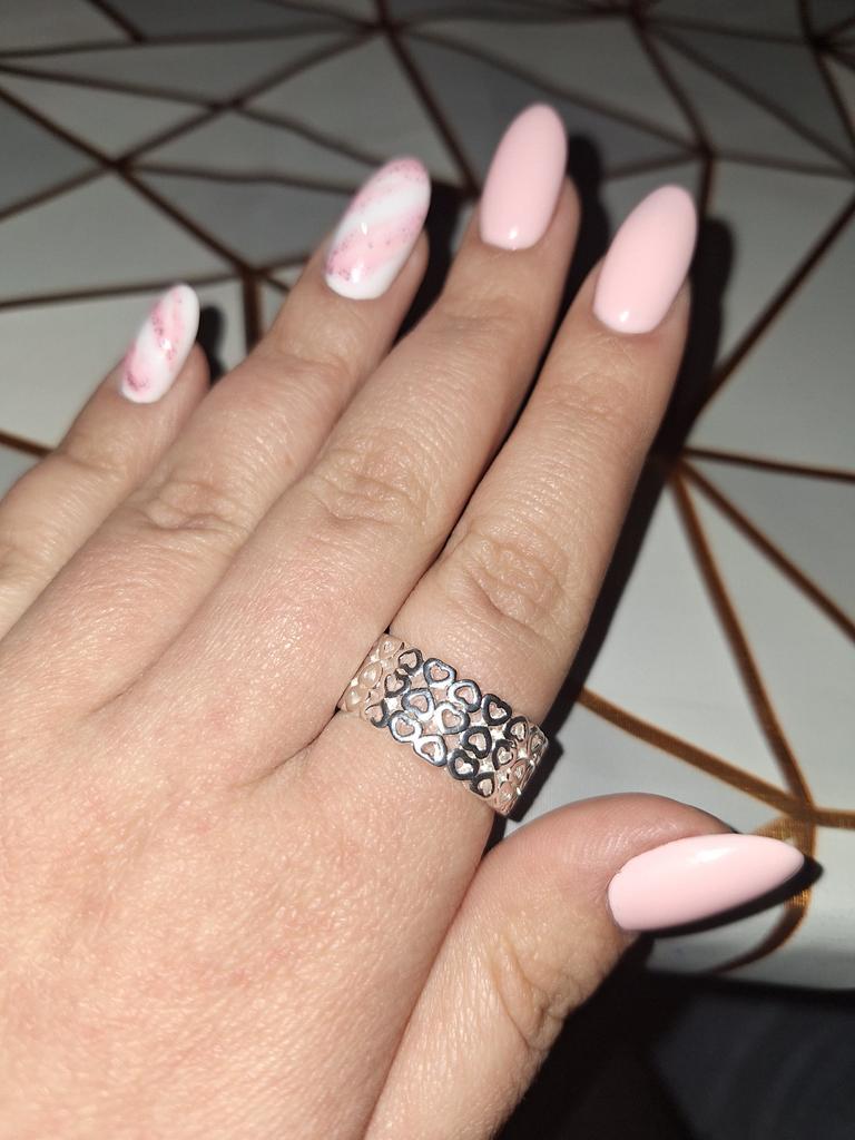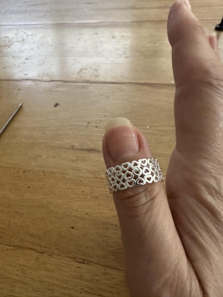 Breiter Silberring, hohle Herzen. Ich empfehle zum Kauf.