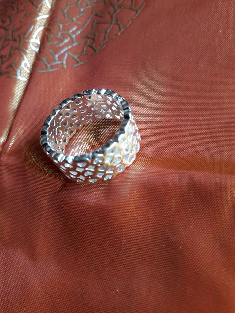 Sehr schön, sieht stylisch aus. Aufgrund der Breite kann es klein ausfallen. Ich habe es am anderen Finger)
