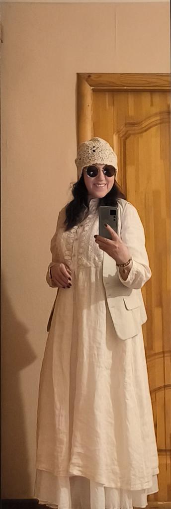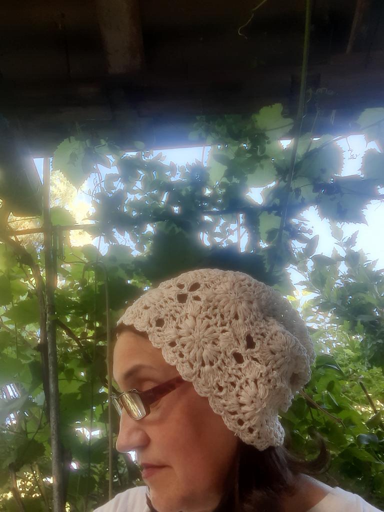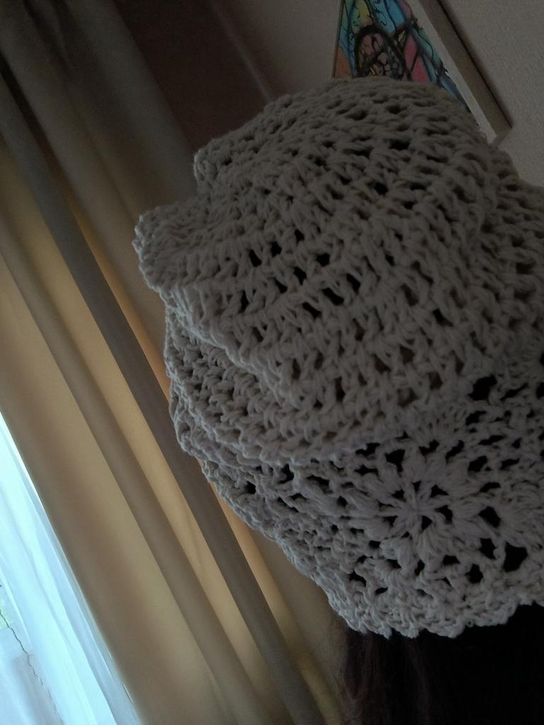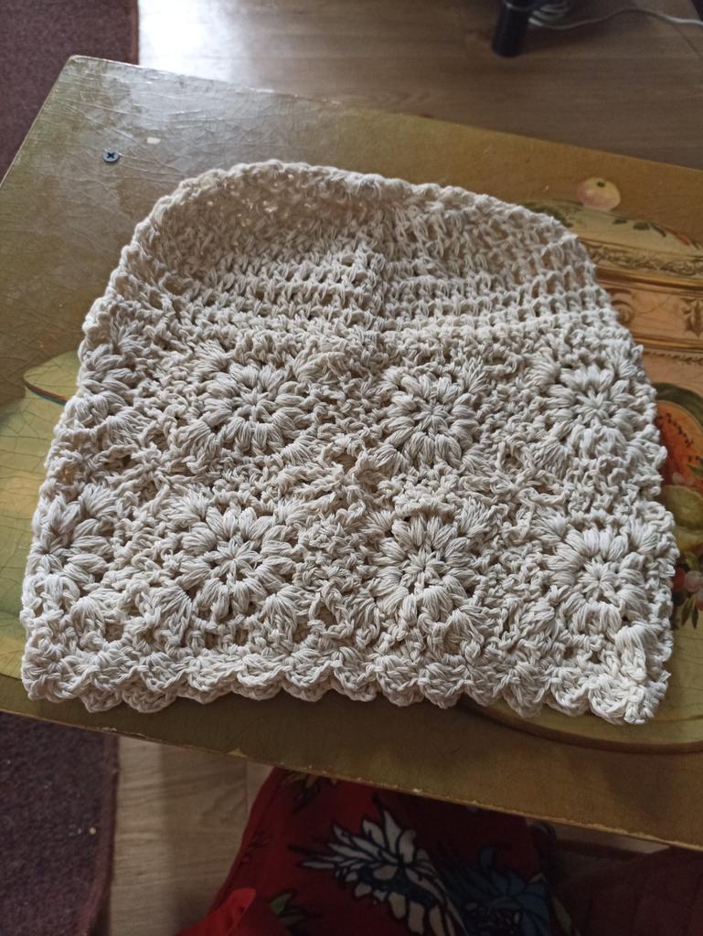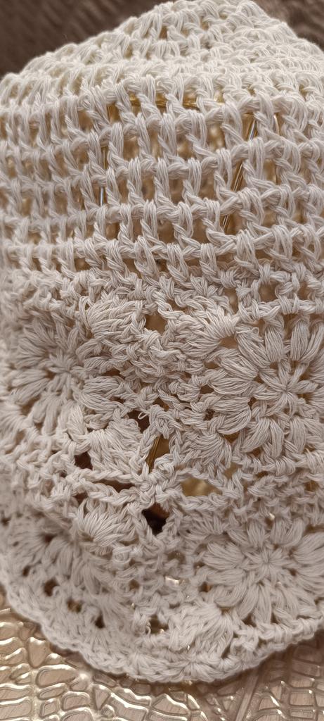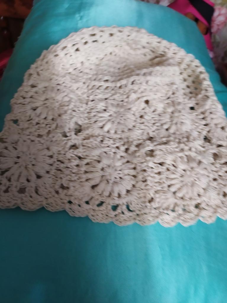 Ich dachte, die Fäden und diese ganze Spitze wären dünner, leichter, keine so massive Strickart.. Auf dem Foto ist alles ein bisschen irreführend. Ich wollte es zu Sommerkleidern tragen, einschließlich des gehäkelten beigen, das ich auch auf Joom bestellt habe.. Jetzt weiß ich es auch nicht. Ich glaube, das wird für den Sommer eine heiße Mütze sein.. Und vom Stil her sollte sie ein leichtes Kleid tragen 🤔