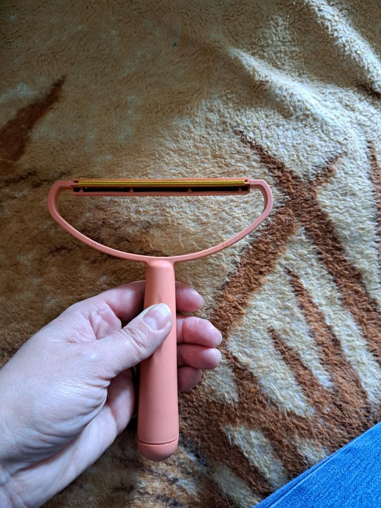Doppelseitige Bürste zum Entfernen von Flusen aus der Kleidung. Habe es an einer Strickhose und einer Strickmütze ausprobiert. Es entfernt wirklich Zotteln, strafft aber den Stoff, wahrscheinlich sind die Zähne an einer Stelle etwas uneben. Die Maschine hat eine bessere Leistung, ist aber für den Transport auf der Straße nicht bequem. Daher eignet sich der Pinsel gut als Reisemöglichkeit, allerdings muss man ihn vorsichtig verwenden, da er Pusteln macht.