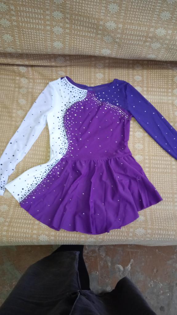 Kinder Mädchen Tanzkleidung Langarm Rundhalsausschnitt Strass Dekor Kontrastfarbe Skating Kleider