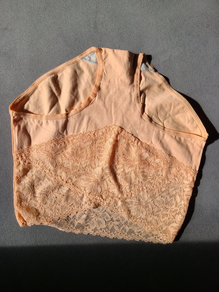 Feine Spitze, wunderschön kombiniert mit Baumwolle. Schade, dass sie sehr groß sind.