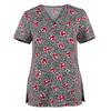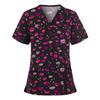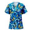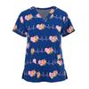 Damenmode neuer Anzug mit V-Ausschnitt, bedruckt, kurzärmelig, lässiges Pflege-Oberteil