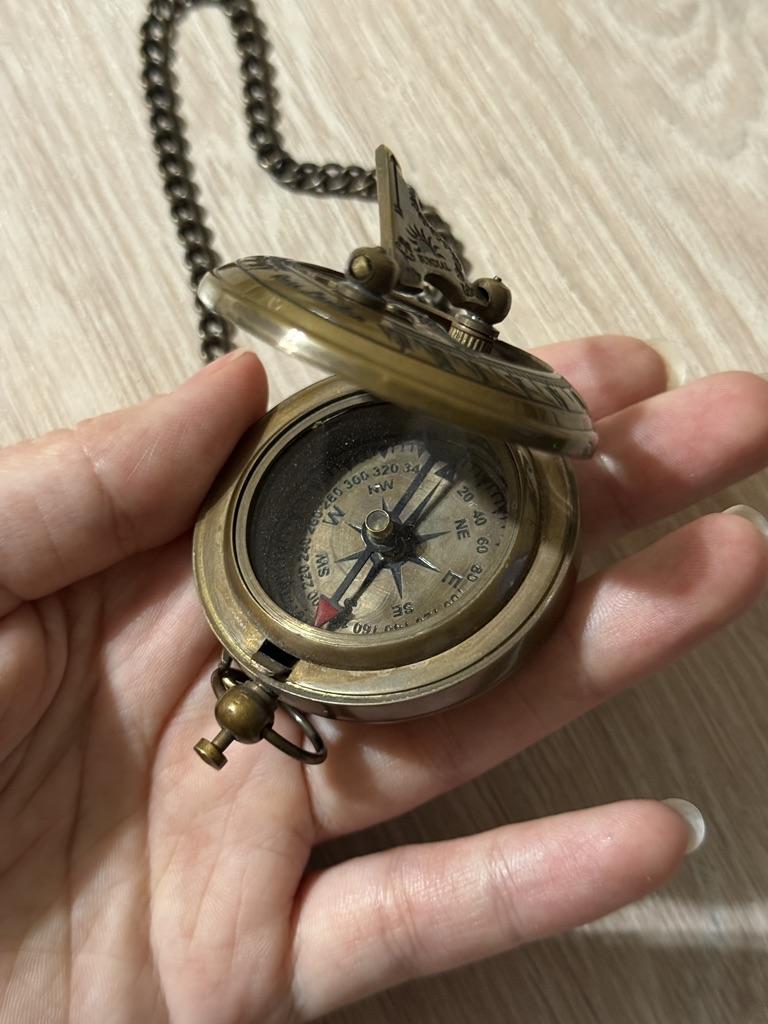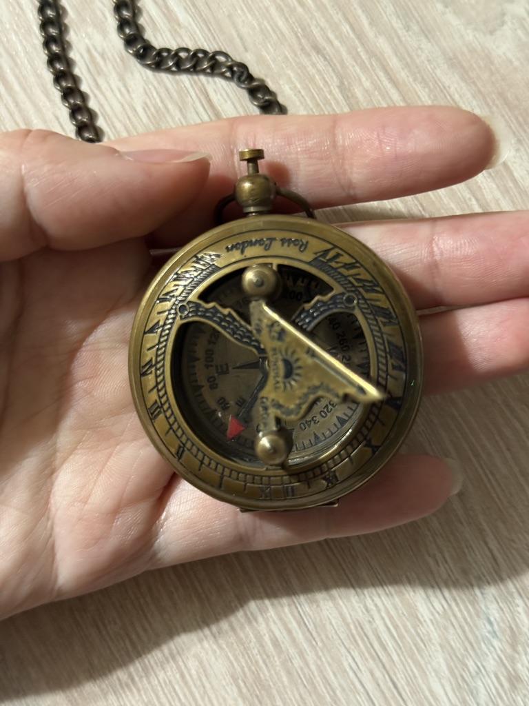 Sonnenuhr-Kompass aus Messing im antiken Stil