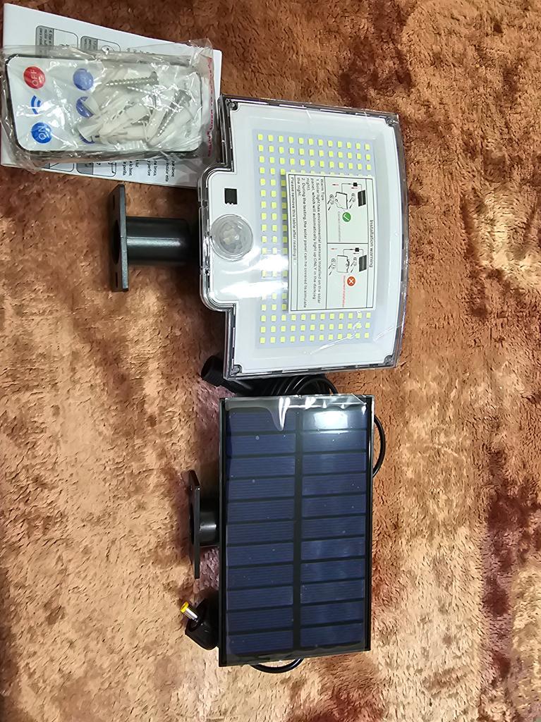 Solarleuchte für den Außenbereich, 106 LEDs, superhell, Bewegungsmelder, Solar-LED-Gartenwandleuchte mit starker Leistung, IP65, wasserdicht, 4 Arbeitsmodi