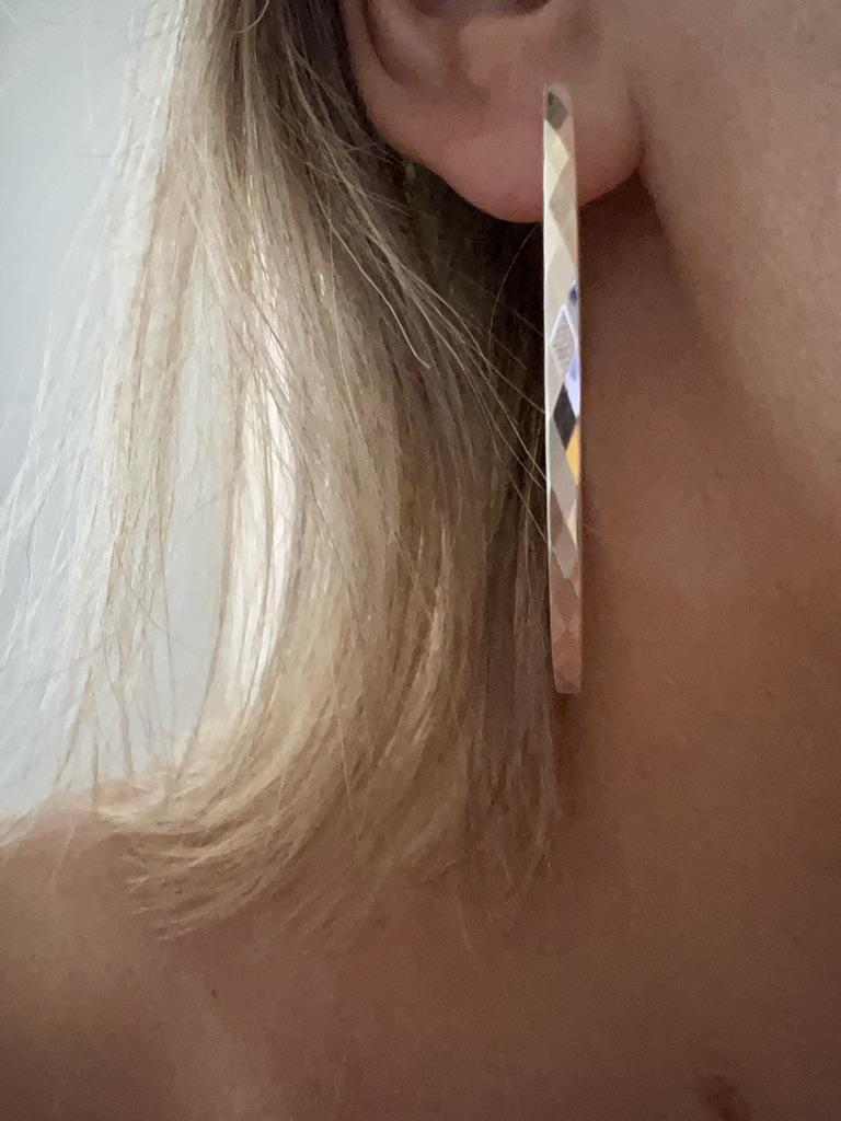Auf einem Ohrring ist ein Kratzer und sie sind sehr groß für mich. Ich stellte sie mir etwas anders vor.