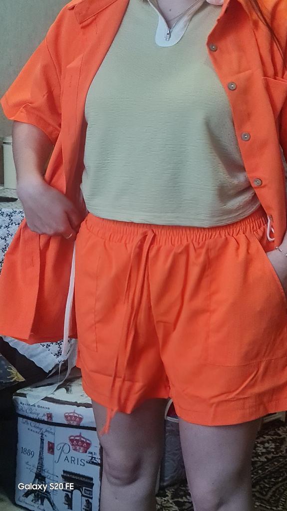 Angenehm beeindruckt von dem Kostüm. Damit Sie die richtige Größe auswählen können, gebe ich meine ungefähren Maße an. Höhe -1,59 m Gewicht - 54 kg Ich dachte zunächst, es wäre mir zu groß, aber beim Anziehen habe ich gemerkt, dass es trotzdem gut passt. Ein paar Details : 1. Ich denke, Größe M passt bis 60 kg . 2. Intensive Farbe . 3. Es ist überhaupt nicht transparent . 4. Die Taschen sind echt und tief. Es handelt sich nicht um Taschenimitationen. . 5 . Der Kordelzug in der Taille ist nur eine Imitat, er spannt nicht. . 6. Gut genäht und gutes Material . 7 . Modern und schön.
