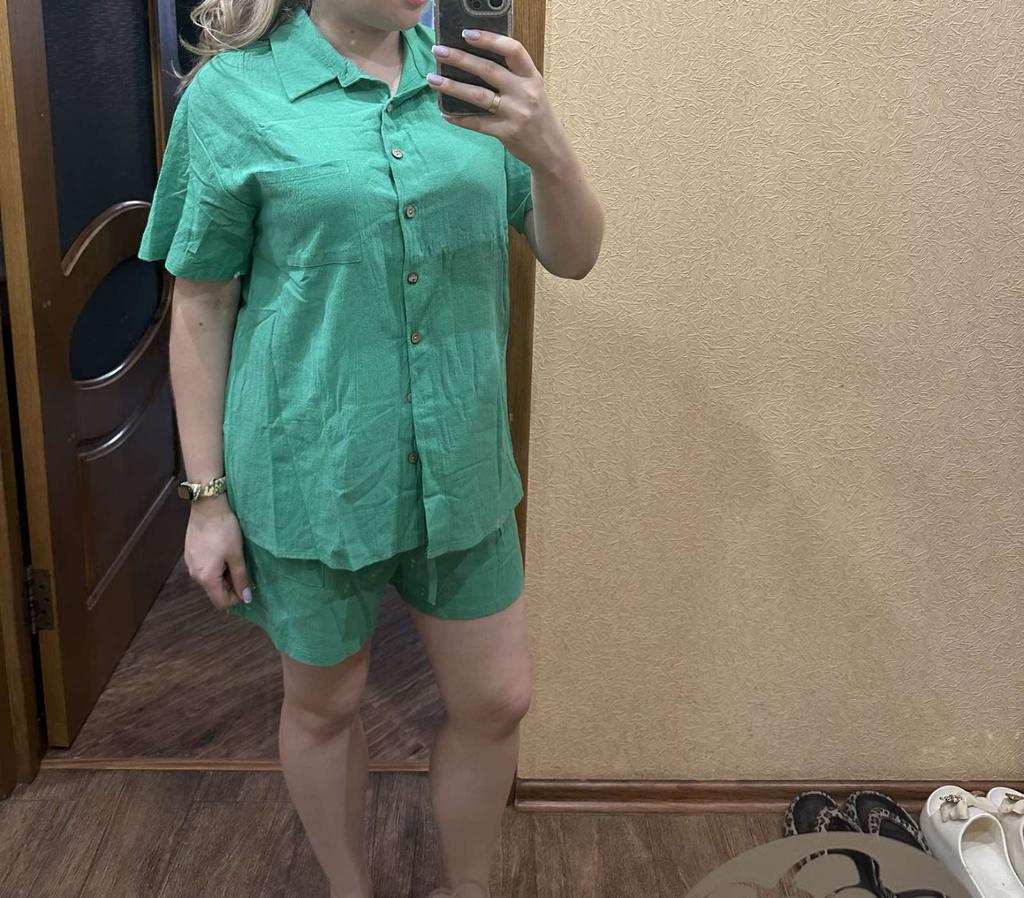 Der Anzug hat die perfekte Größe, das Hemd und vieles mehr. Die Farbe stimmt nicht ein bisschen überein, aber es ist trotzdem ein sehr schönes Grün. Ich empfehle mit Zuversicht, gute Qualität, Baumwolle. P.S. Der perfekte Anzug, ich habe ihn bestellt, um ihn im Urlaub zu tragen, aber auch auf der Arbeit trage ich das Hemd mit großer Liebe. Ich empfehle.