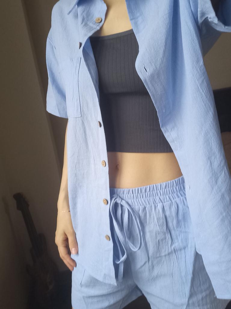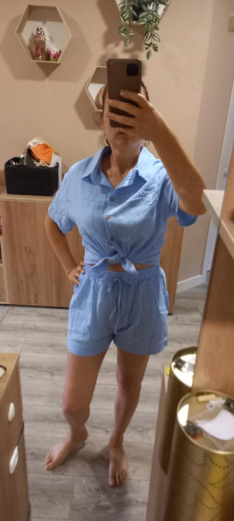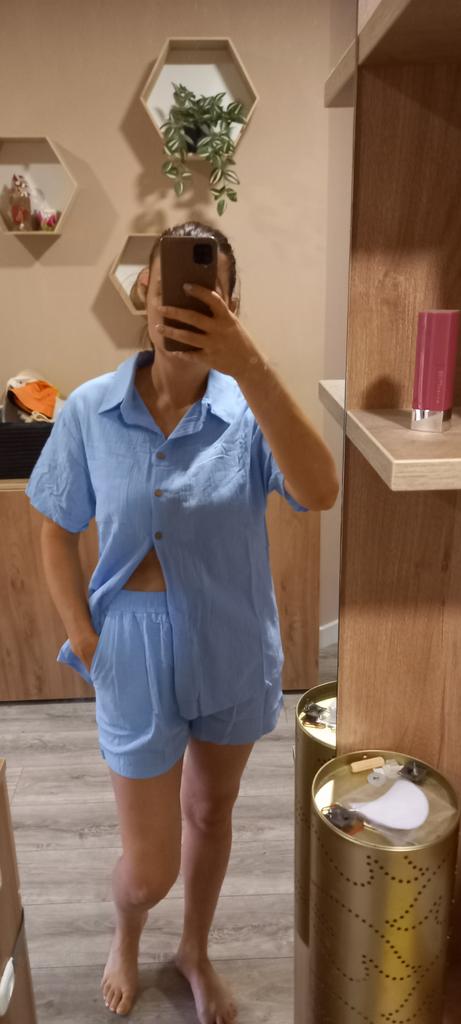 Süßer Anzug, sehr gut für den Sommer, Farbe wie auf dem Bild, Größe 48-50, aber nicht sehr locker, wer es lockerer mag, sollte eine größere Größe bestellen.