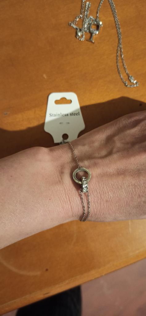 Das Armband ist sehr zart und sieht an Ihrer Hand wunderschön aus! Für mich ist es etwas zu groß, die Ringe werden ständig nach unten gezogen, aber ich bin trotzdem zufrieden! Mit der Zeit wird es höchstwahrscheinlich oxidieren, aber für diesen Preis ist das nicht schade) Dank Joom!