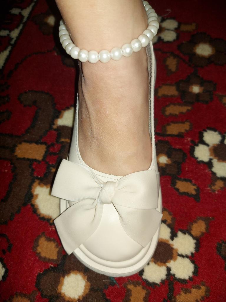 Das Schuhmodell ist ganz anders als auf dem Foto. Der Beschreibung entsprechen nur die Perlen, und selbst die haben irgendwelche blauen Flecken.