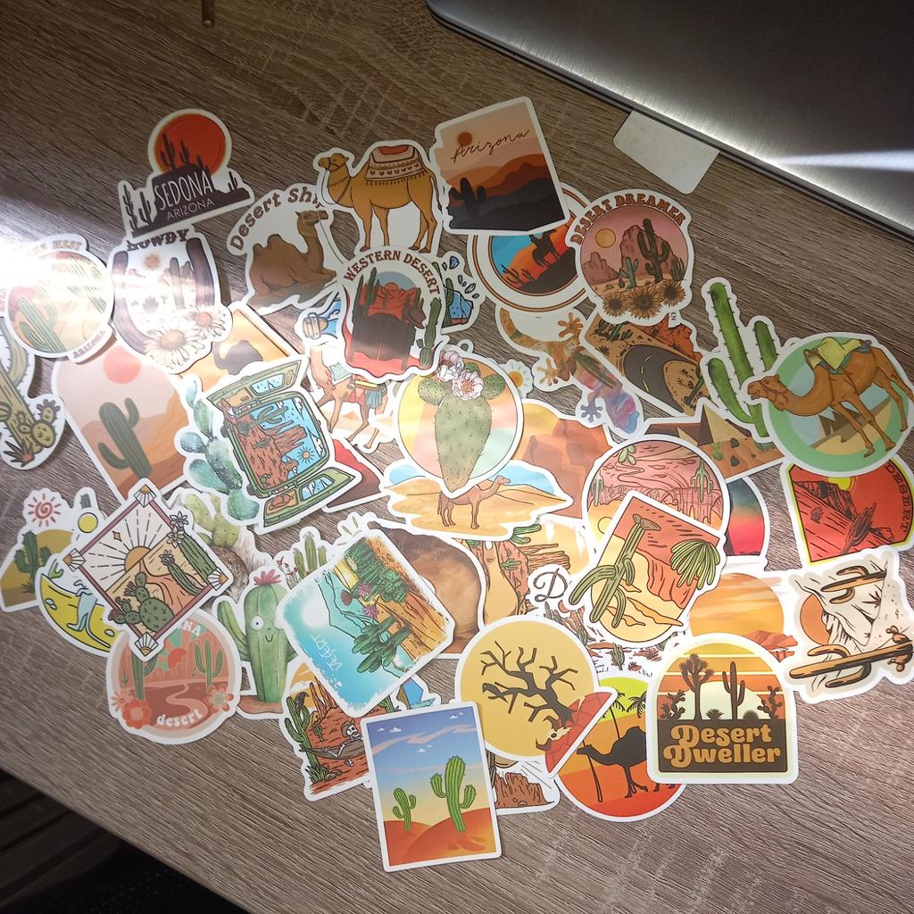 10/50 Stück Cartoon Wüste Aufkleber Großer Kaktus Graffiti Aufkleber für DIY Gepäck Laptop Skateboard Motorrad Fahrrad Aufkleber