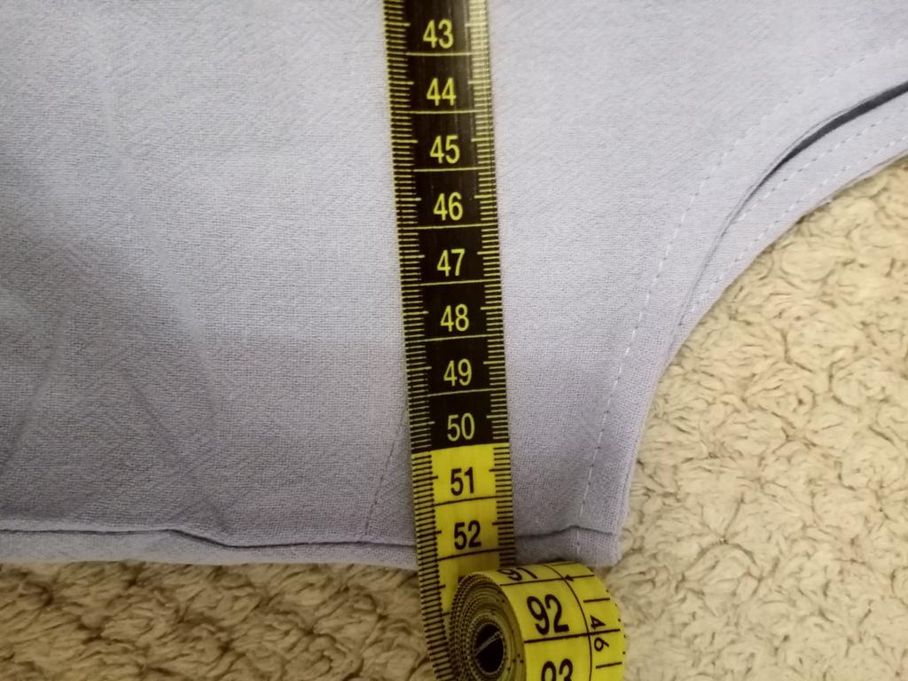 Für Größe 50 habe ich 2XL bestellt, genau richtig. Ohne Mängel genäht, der Stoff ist von guter Qualität, er scheint nicht durch. Die Stickerei verleiht dem Stoff einen besonderen Touch. Ich empfehle