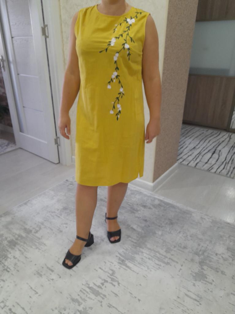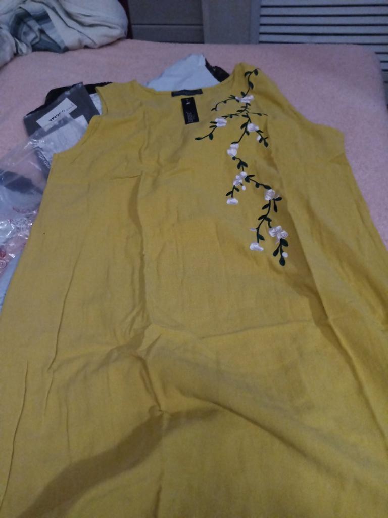 Die Farbe ist nicht gelb, sondern schmutziges Gelb, die Stickerei ist rosa, warum, warum, ich werde es tragen, aber nur zu Hause, es ist schade, es ist schade