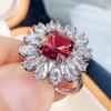 Neuer Deluxe-Ring mit floralem rotem Zirkonia für Damen, glänzendes Finger-Zubehör, Jubiläums-Party-Geschenk, Premium-Damen-Schmuck