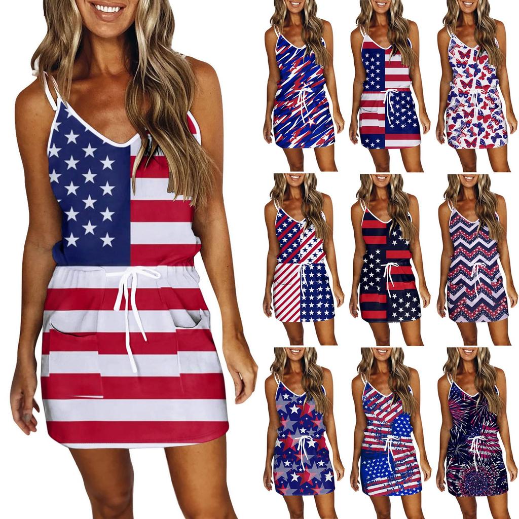 Damenmode-Unabhängigkeitstag-bedrucktes, ärmelloses Bandage-Hosenträgerkleid