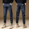 Frühlings-Herren-Stretchjeans mit Plüsch, normale, schmal geschnittene, gerade Röhre, Plüsch-Denim-Herrenhose, trendige Marke
